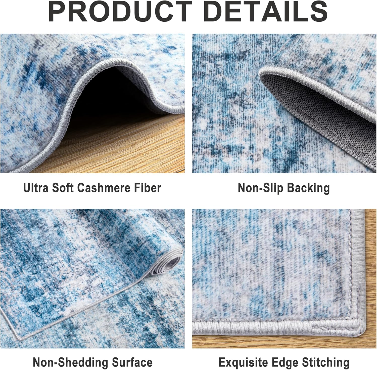 6x9 Area Rugs for Living Room - Washable Rug Modern Abstract Soft Large Neutral Non-Slip Carpet Indoor Floor Thin Carpets for Bedroom Dining Room Farmhouse Nursery Home Office Blue Grey