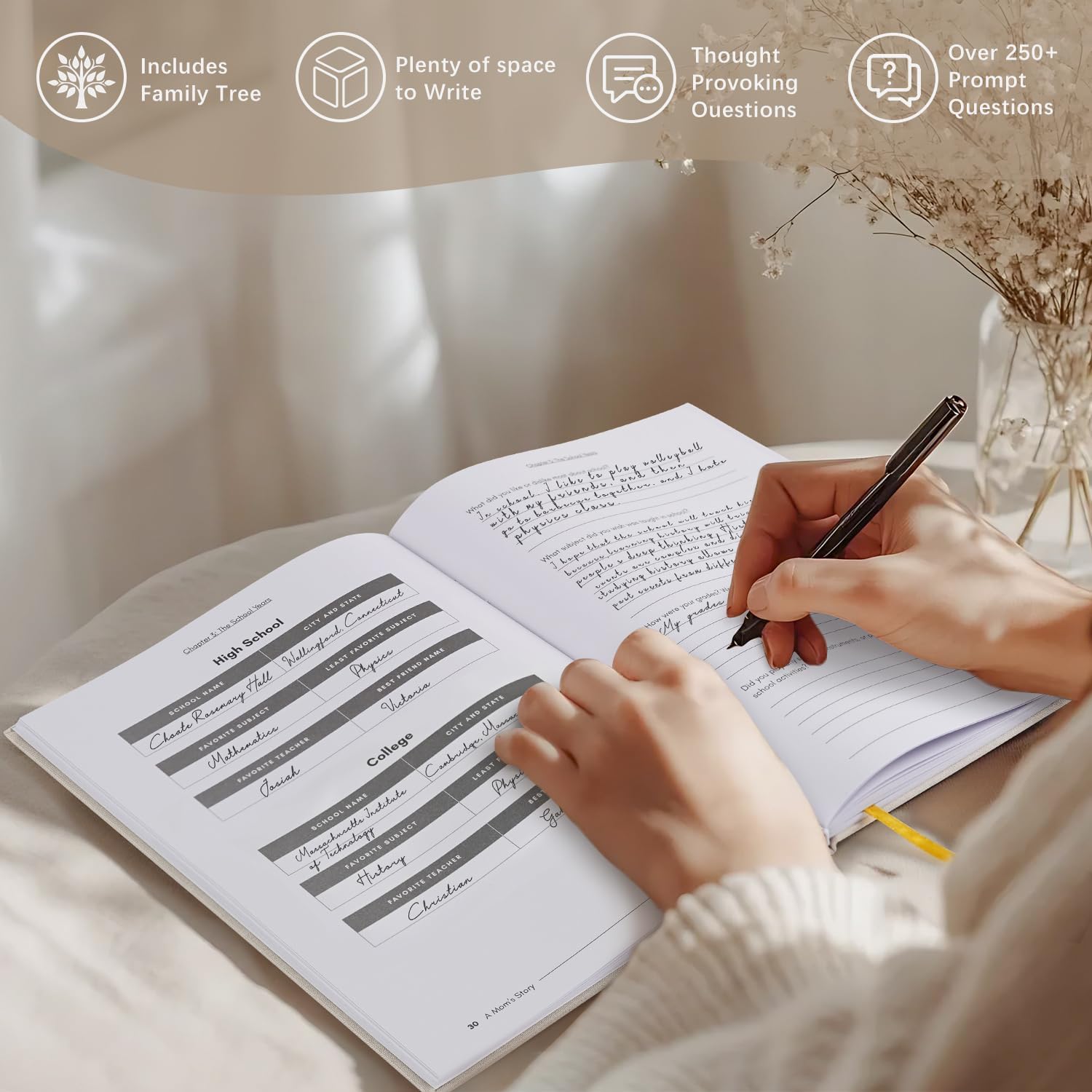 Artmag Mom's Life Story Journal Family Keepsake Book Linen Hardcover for Mom to Share Her Memories, with 250+ Prompt Questions Book Gift for Birthday Mother's Day Christmas (Beige)