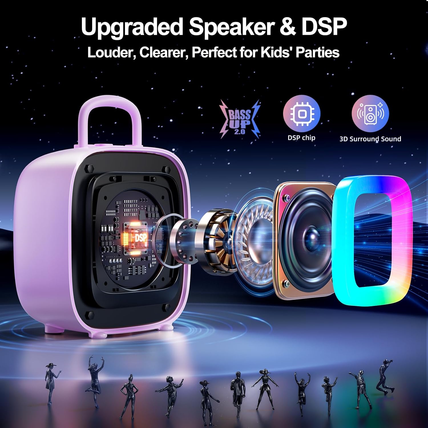 Kinglucky Karaoke Machine for Kids Girls Ages 3-12 with 2 Light-Up Microphones, Bigger Size Yet Portable Bluetooth Speaker with Voice Effects for Birthday, Family Fun & Party (Purple)