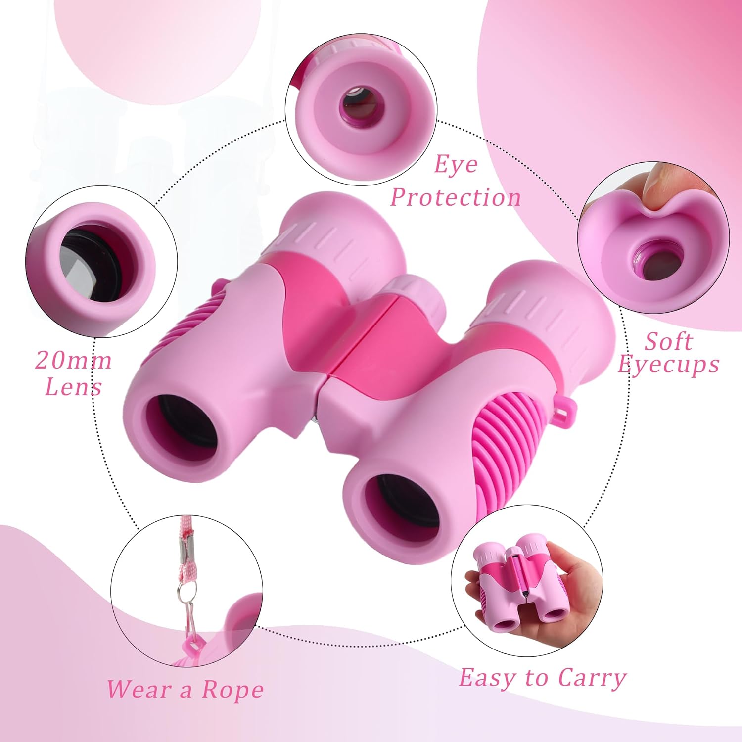 - [Binoculars for Kids Exquisite and Portable]:Our Binoculars has an exquisite appearance and beautiful color scheme, adding color to children's exploration journey.It is small and lightweight, making it easy to carry around and put in a backpack.Easy for children to easily take out and use it to start exploring while playing.