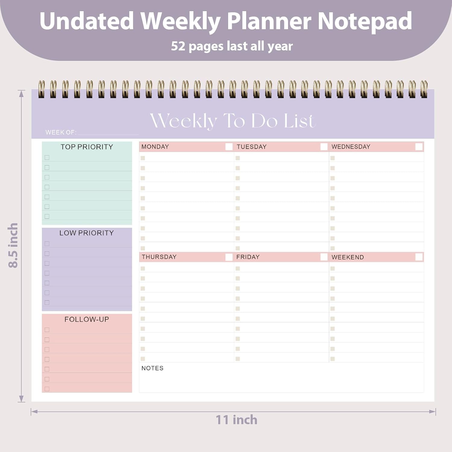 Weekly To Do List Notepad, Undated Planner with 52 Sheets (8.5''x11''), Desk Weekly Planner for Women & Man, Home School & Work (C-Lilac)
