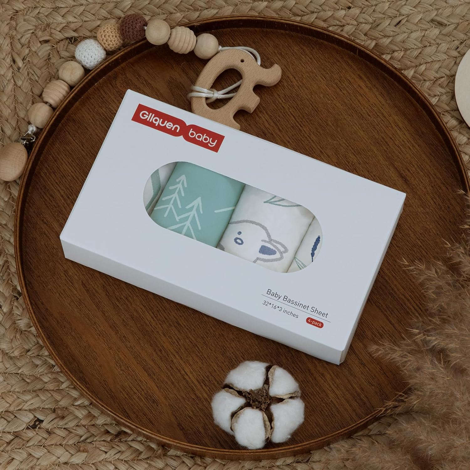 Gllquen Baby Bassinet Sheets 4 Pack, Breathable Cozy Fitted Mattress Sheet, Elastic Travel Crib Fashionable Pattern, Standard Cradle Safe Sheets for Baby Boys Girls 32"x16"(Forest Deer)