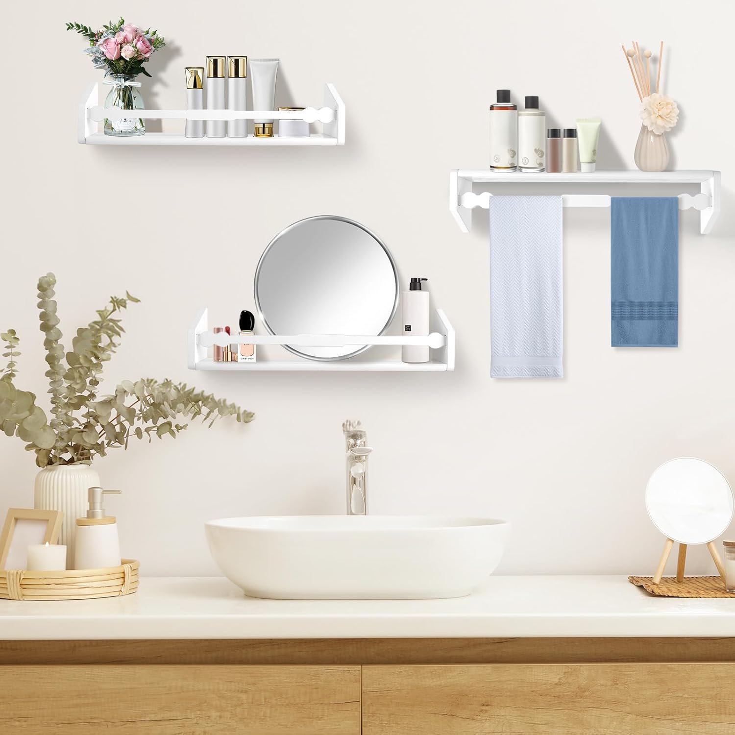comfoyar Nursery Book Shelves Set of 3, 15.7 Inch Solid Pine Floating Shelves for Wall, Hanging Bookshelf for Kids Boys Girls Baby, Decoration for Bedroom Kitchen Bathroom Playroom, White