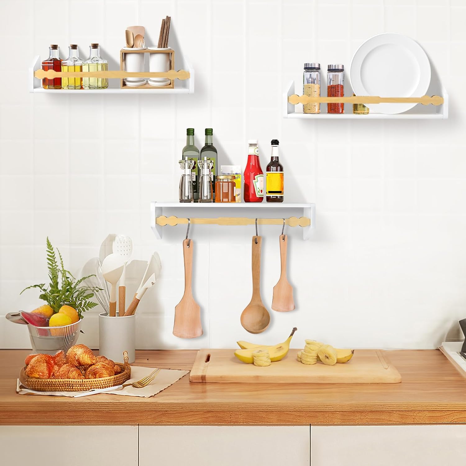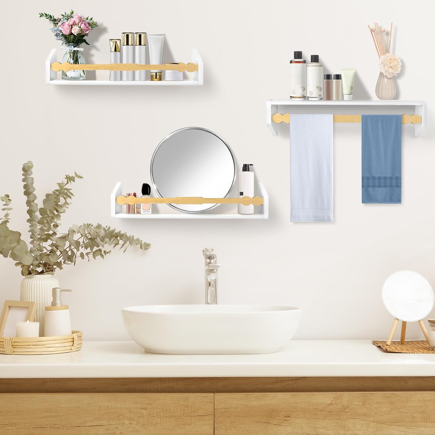 comfoyar Nursery Book Shelves Set of 3, 15.7 Inch Solid Pine Floating Shelves for Wall, Hanging Bookshelf for Kids Boys Girls Baby, Decoration for Bedroom Kitchen Bathroom Playroom, White and Natural