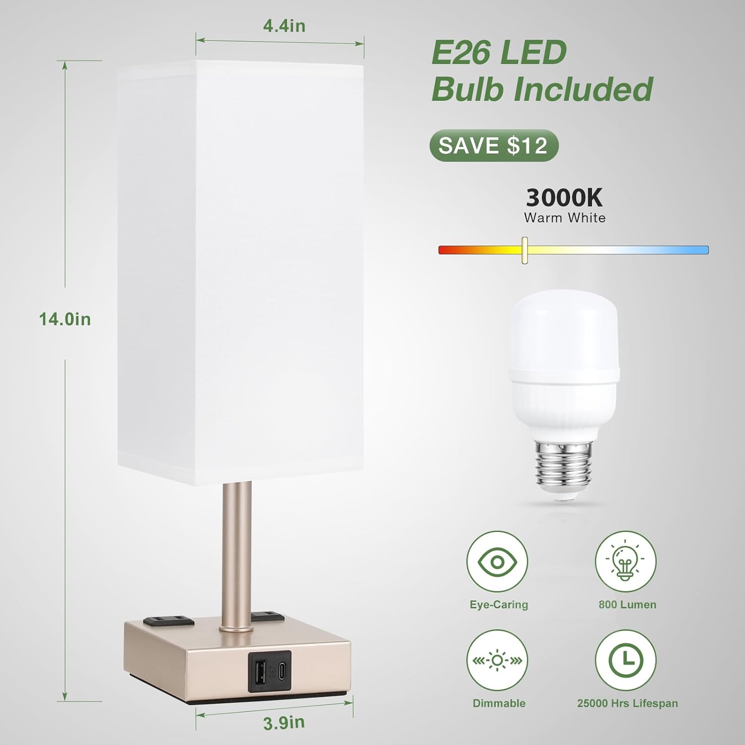 - 2 Energy Efficient LED Bulbs Included - This nightstand lamps set of 2 packed with dual dimmable E26 LED bulbs. NO FLICKER, NO DAZZLE. Equiped with the stylish linen fabric lampshade, these two 3000K warm bulbs can help bring a warmer ambience to our decor lamp which is good for eye-caring.