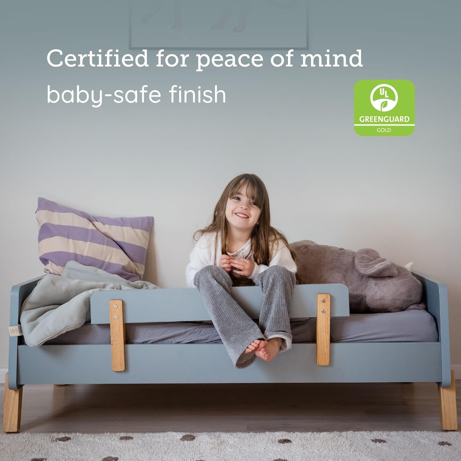 dadada Muse Blue Toddler Bed with 2 Removable Safety Rails. Low Profile Montessori Bed. Sturdy Solid Wood Frame, Fits Standard Crib Mattress, Easy to Assemble, Toddler Bed for Boys & Girls - Blue