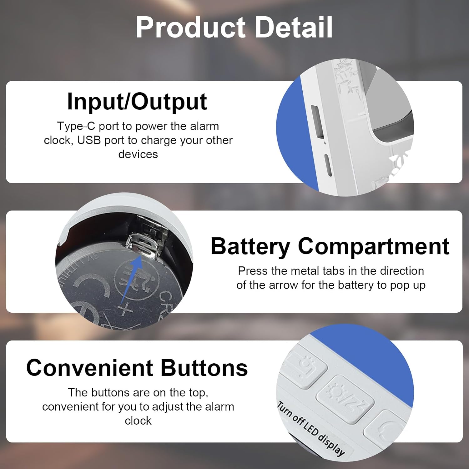 - Wide Use: Whether you're a heavy sleeper or an early riser, this alarm clock is perfect for everyone. It combines functionality with ease of use, making it the ideal companion for students, professionals, or anyone looking to stay organized. As a perfect home decor, you can put it in your living room, bedroom, or in your office
