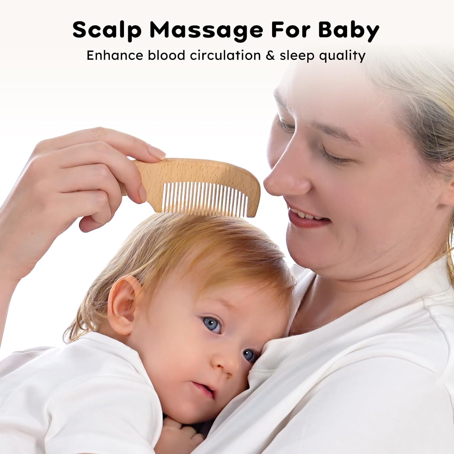 - Scalp Massaging Benefits: Our all-natural beech wood hair brush is an excellent tool for scalp massages, which can improve blood circulation. Regular scalp massages with our baby brush set can help your baby relax and support overall scalp health.