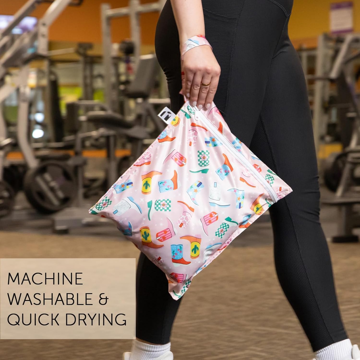 Bumkins Roamio - Waterproof Wet Bag - For Baby, Travel, Swim Suit, Cloth Diapers, Pump Parts, Pool, Gym, Toiletry, Strap to Stroller - Reusable & Easy to Clean - 2pk - Cowgirl Boots & Disco
