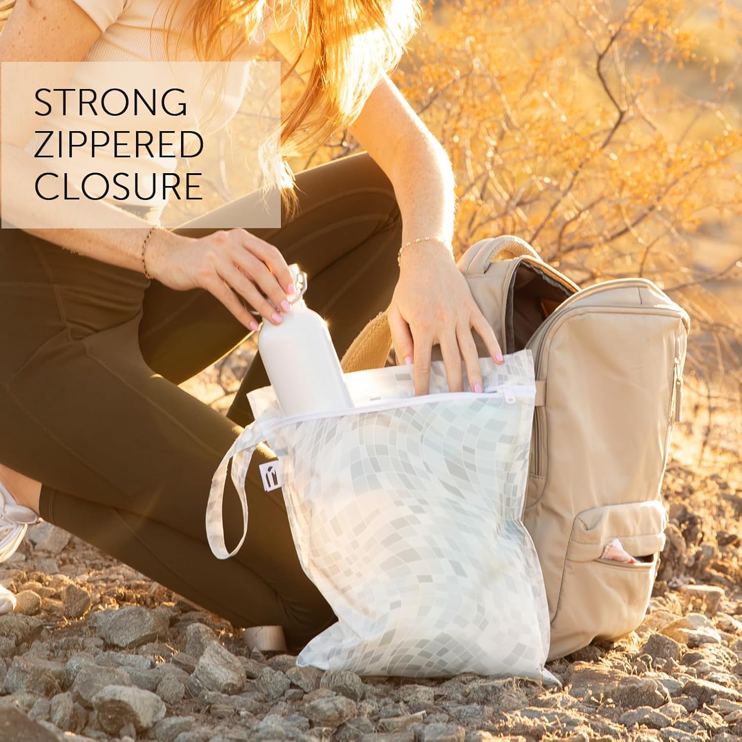 - VERSATILE USE - Not just for wet items! Use as organizers for storage, packing cubes, or diaper bag essentials. Built-in snap handle makes it easy to attach to strollers, suitcases, or hooks—great for travel, camping, pool days, and more.