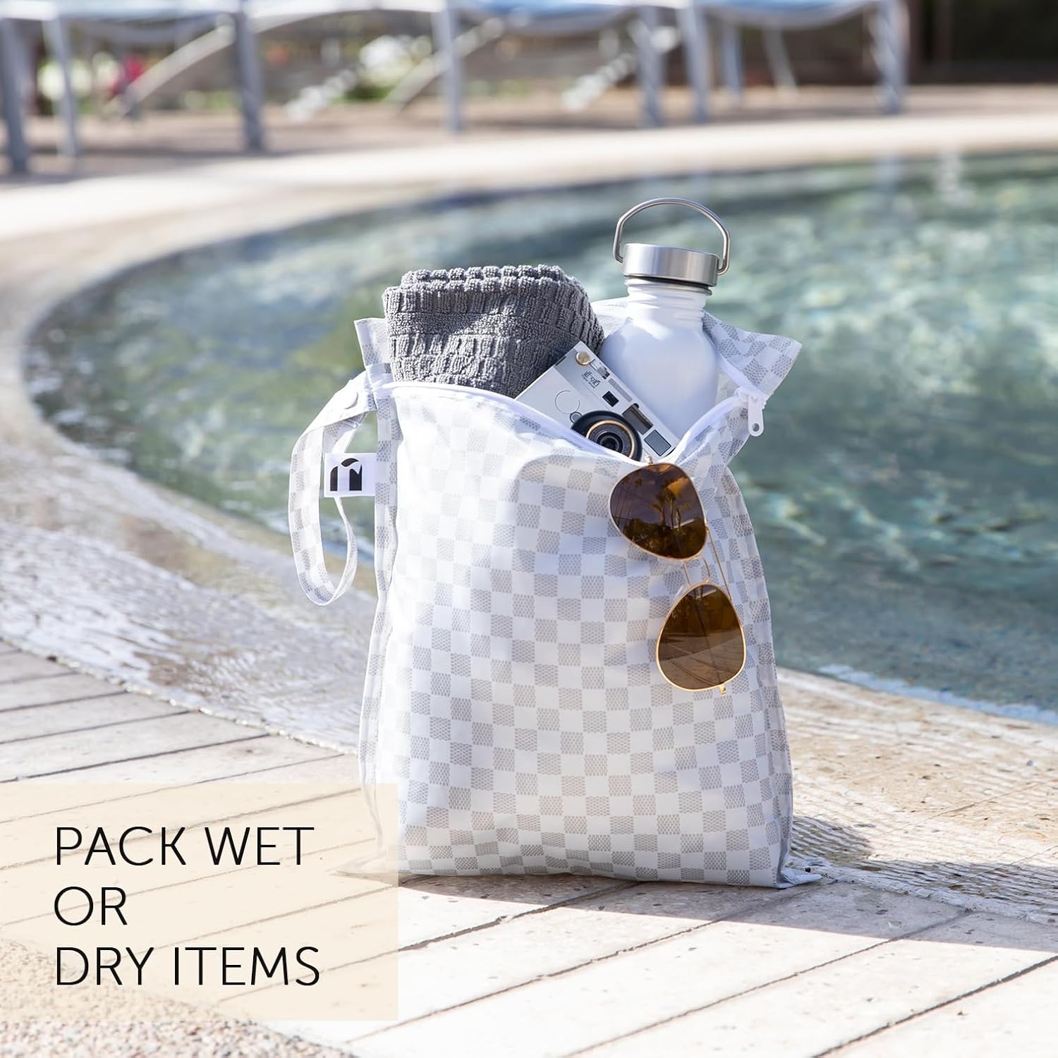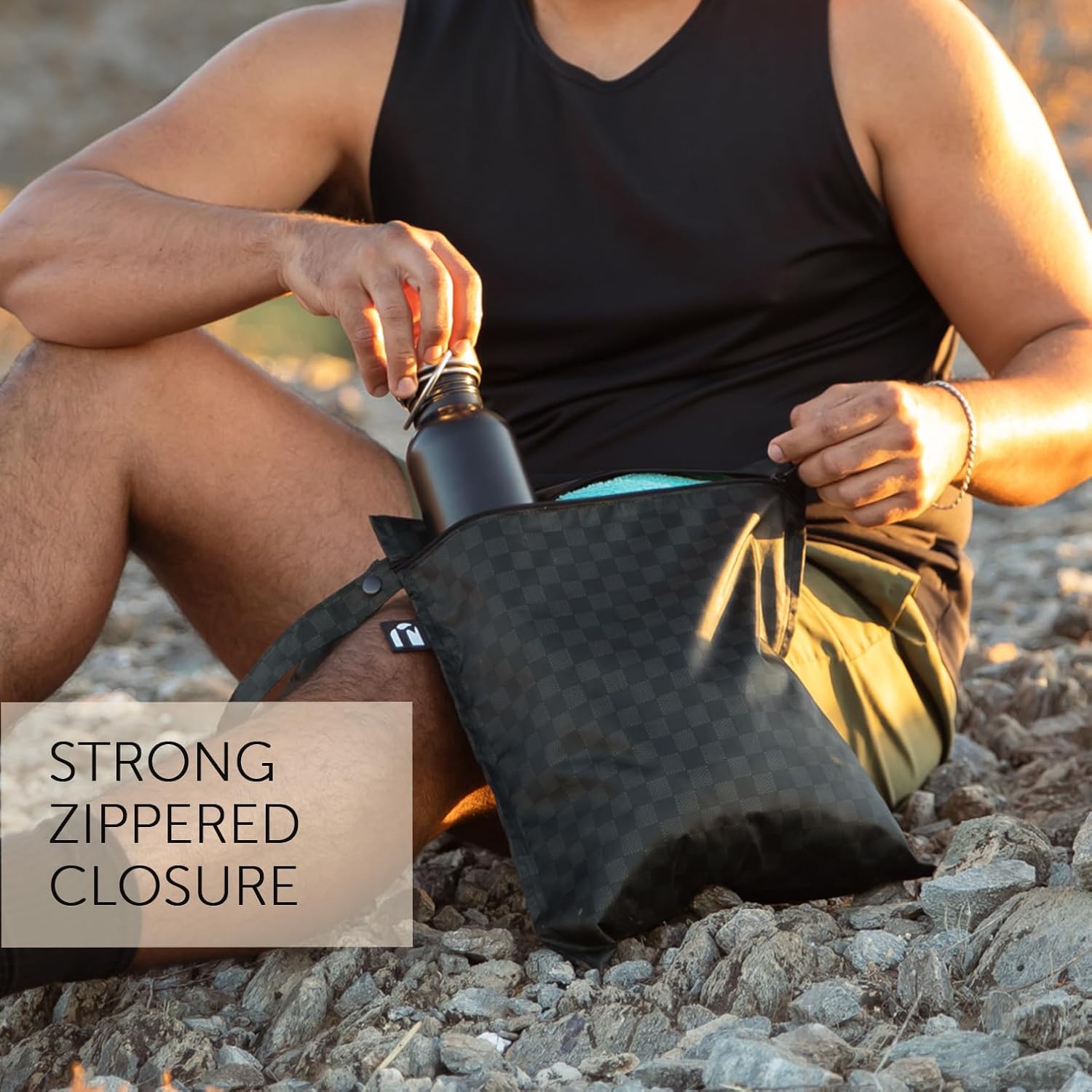 - VERSATILE USE - Not just for wet items! Use as organizers for storage, packing cubes, or diaper bag essentials. Built-in snap handle makes it easy to attach to strollers, suitcases, or hooks—great for travel, camping, pool days, and more.