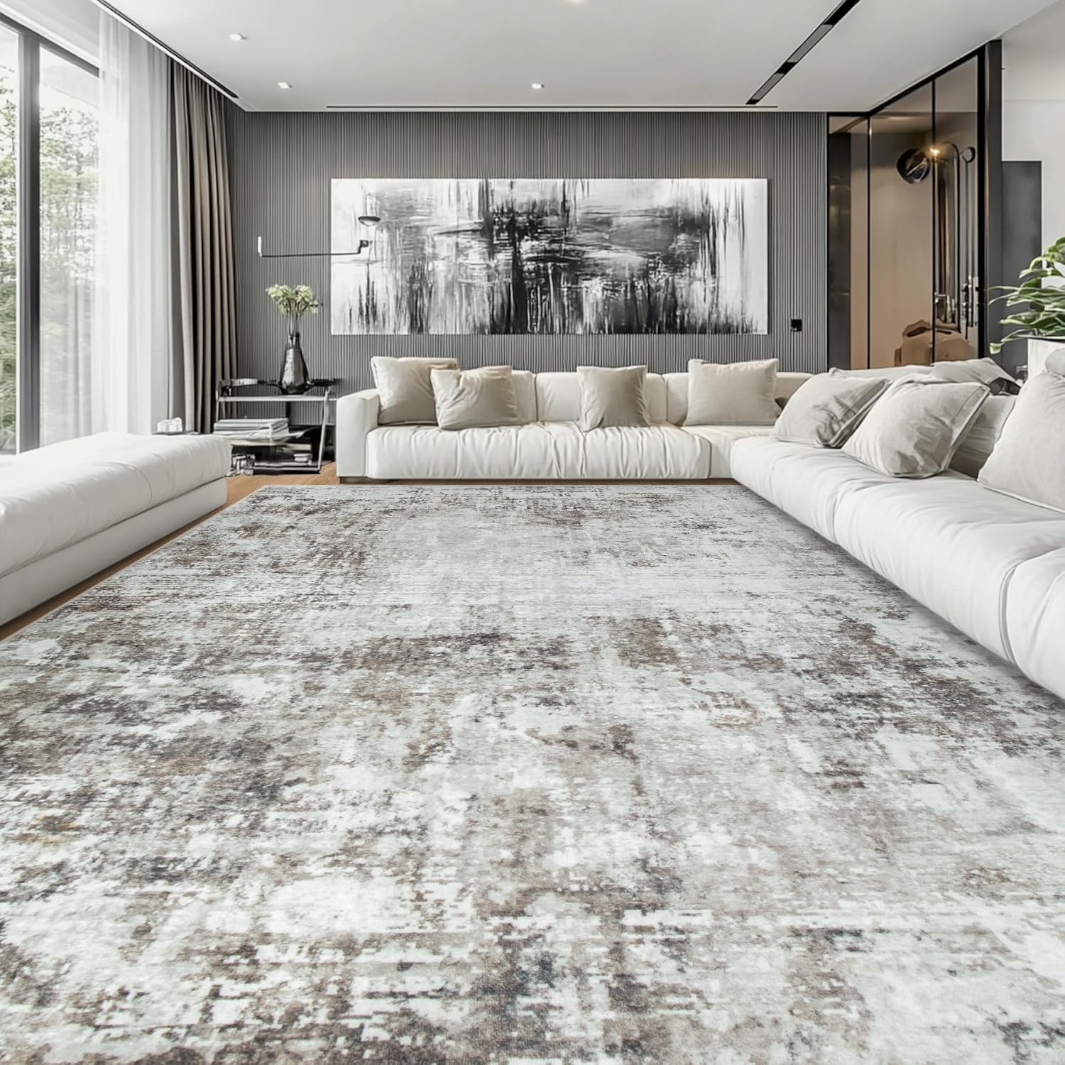 10x14 Area Rugs Large Living Room Rug Washable: Modern Abstract Rug Indoor Modern Carpet Non Slip for Dining Room Bedroom Nursery Home Office Brown Grey