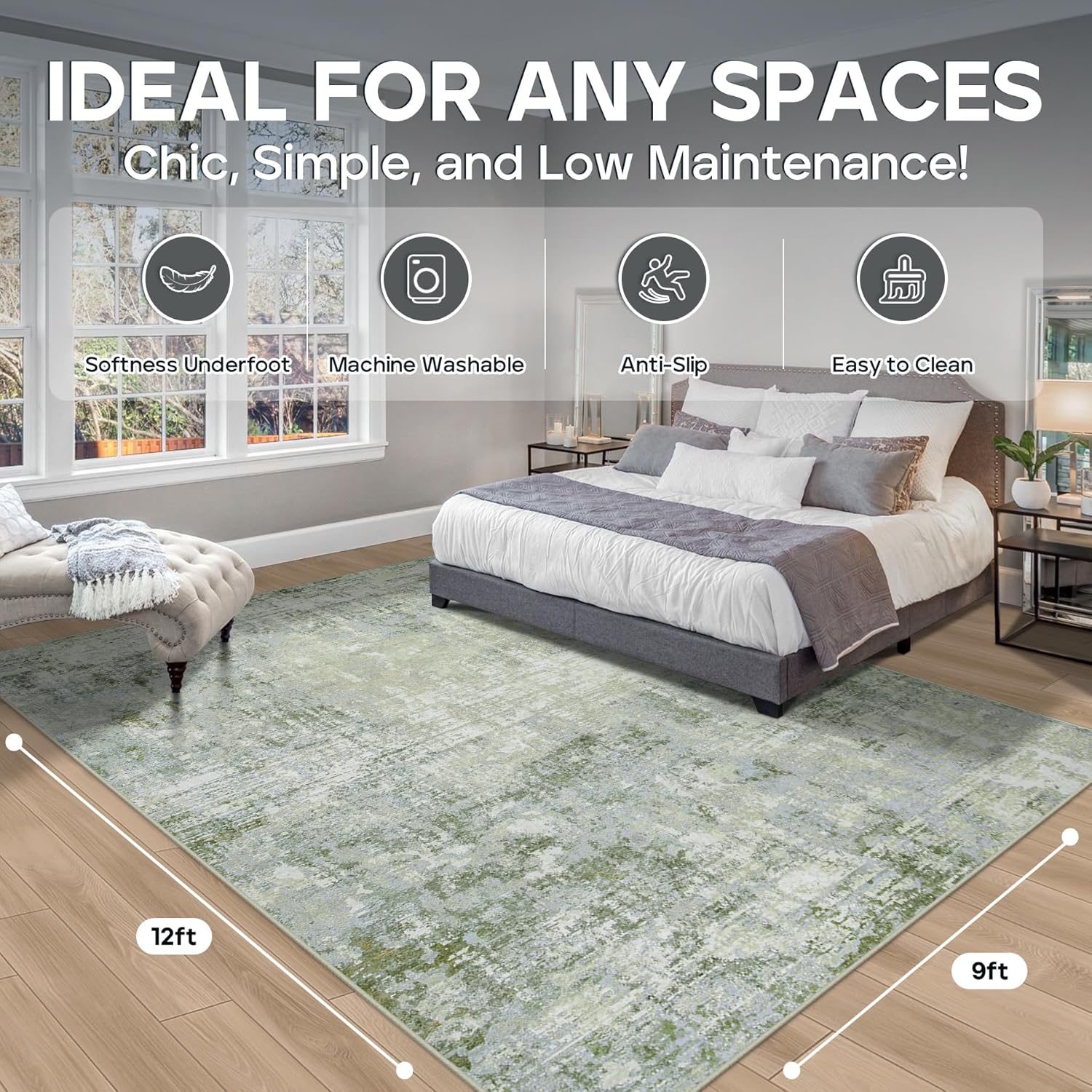 9x12 Area Rugs for Living Room Rug Washable: Modern Large Rug for Dining Room Bedroom Carpet Non Slip 9 by 12 Indoor Abstract Nursery Home Office Green