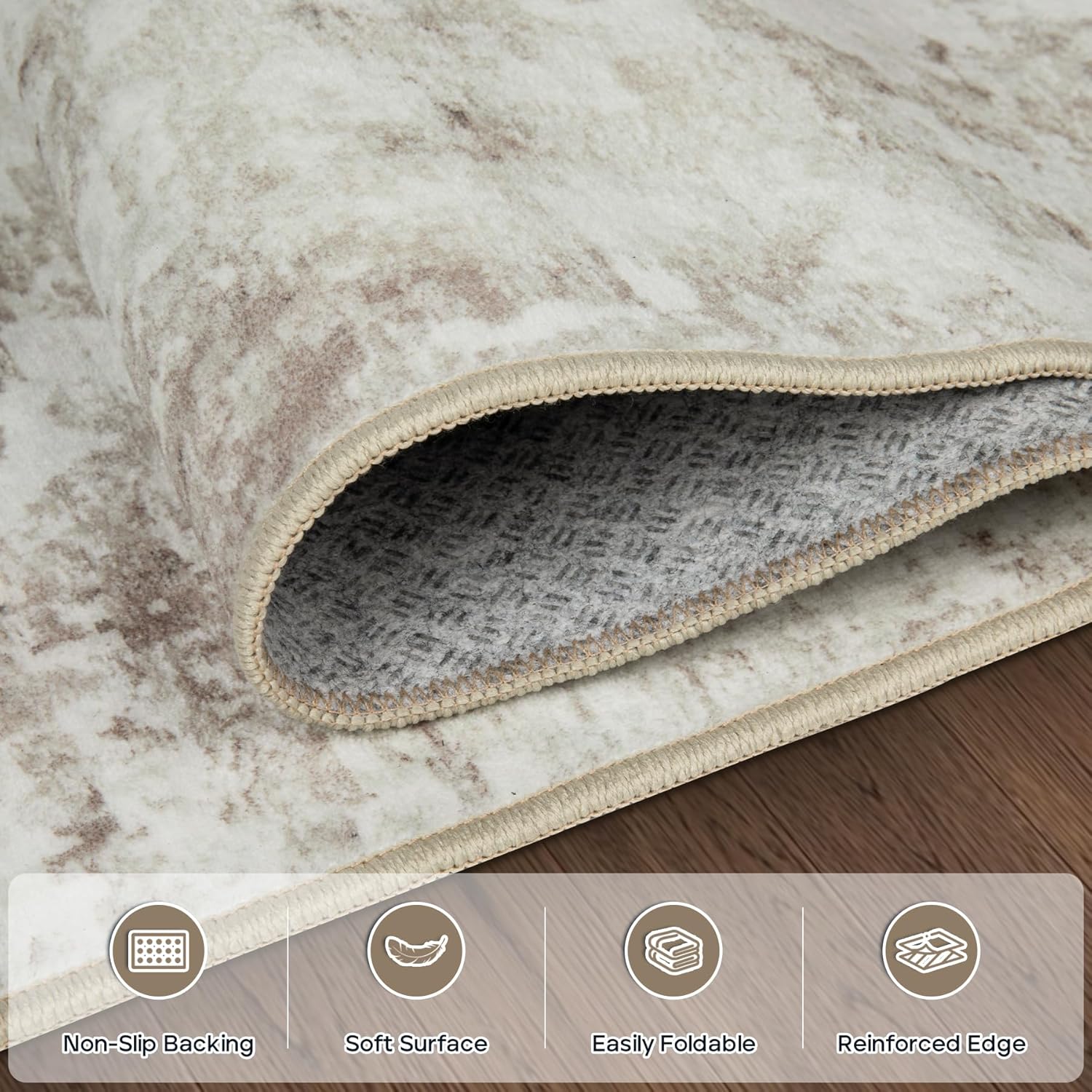 5x7 Area Rugs for Living Room Rug Washable: Modern Rug for Dining Room Bedroom Carpet Non Slip Low Pile 5 by 7 Indoor Abstract Nursery Home Office Beige