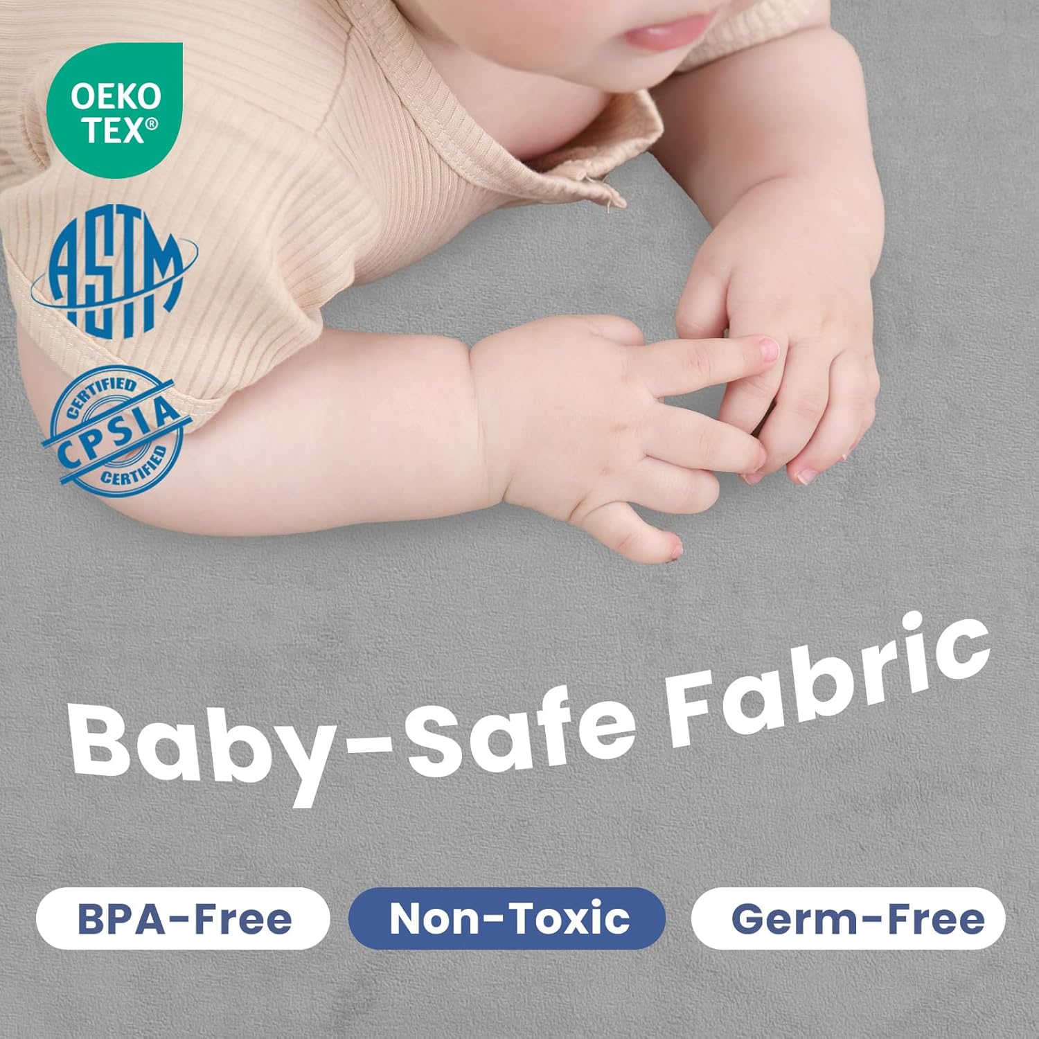 - 【SOFT TOUCH&THICK PLAYMAT】:Our nursery rug features high-quality, non-toxic 1.3-inch thick slow-rebound memory foam and is certified by OEKO-TEX fabric for added peace of mind. Made from non-shedding 100% coral velvet, it ensures a safe and worry-free play area for your little ones. The skin-friendly material provides a comfortable touch, while the non-slip design creates a secure space for play. This design also enhances longevity, maintains aesthetic appeal, and protects your floors, offering a comfortable stepping surface