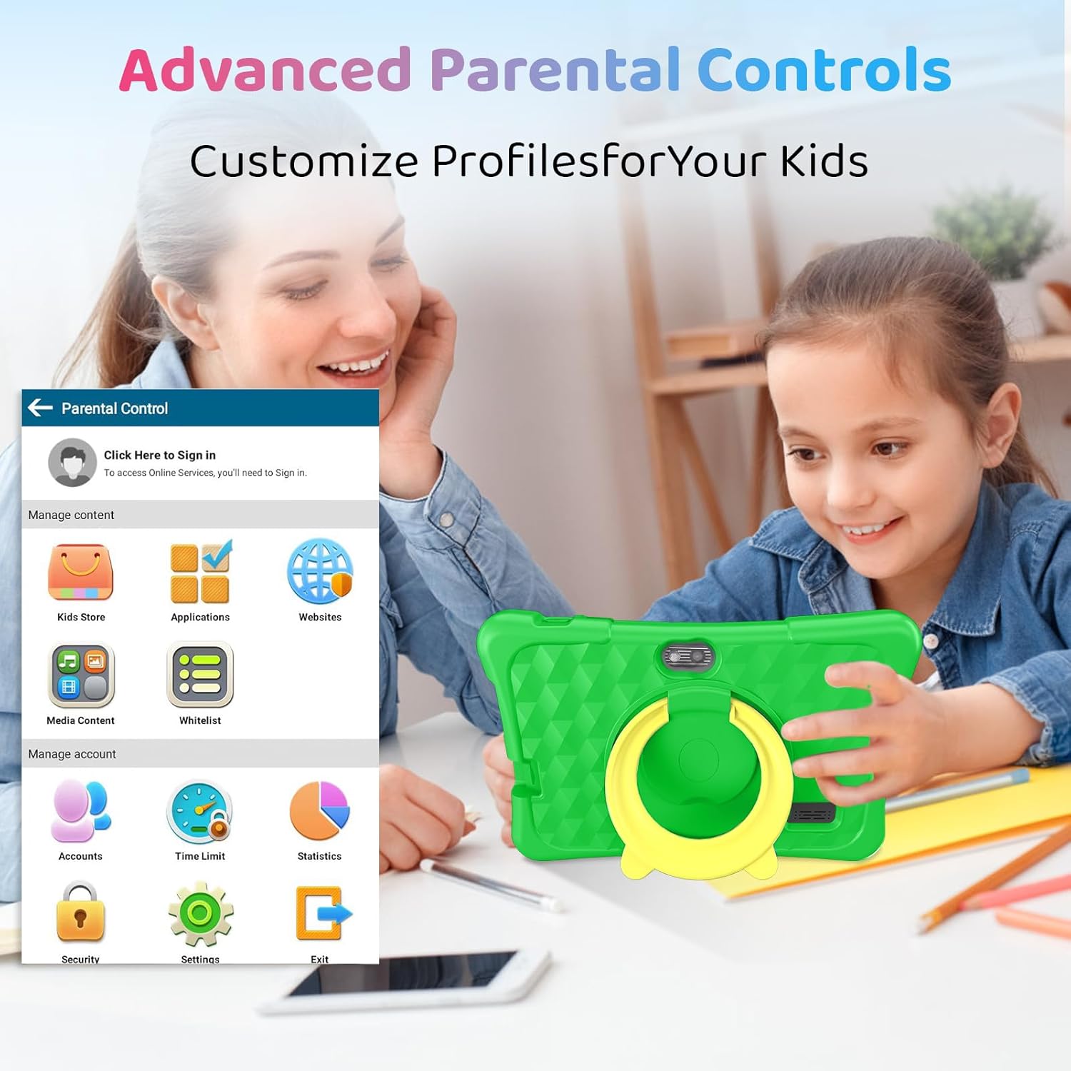 - Durable Design - The children tablet comes with a soft and durable silicone case that resists accidental drops, bumps, and scratches for reliable protection. The rotatable stand allows the tablet to be placed vertically or horizontally, ensuring your child’s comfort during use.