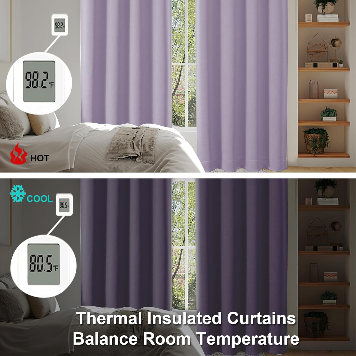Simplebrand Ava Lilac Blackout Curtains for Bedroom 63 Inch Length 2 Panels Set, Nursery Thermal Insulated Energy Saving Rod Pocket Window Treatment Curtains Blackout Drapes, W40 x L63 Inch, Lilac