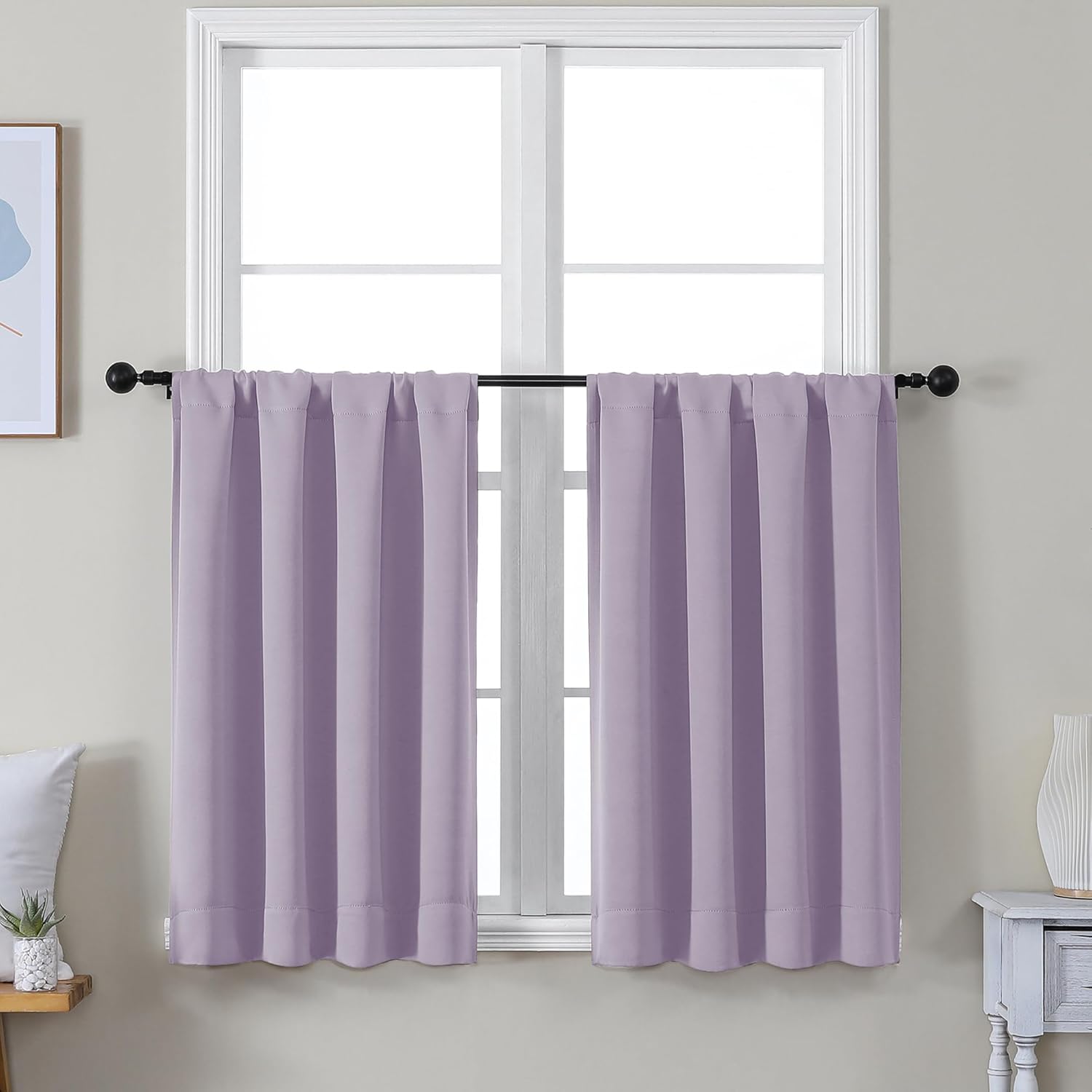 Simplebrand Ava Lilac Short 36 Inches Blackout Curtain 2 Panels Set, Half Window Rod Pocket Privacy Curtain Tiers for Kitchen, Curtains Blackout for Bathroom Shades, W40 x L36 Inch, Lilac