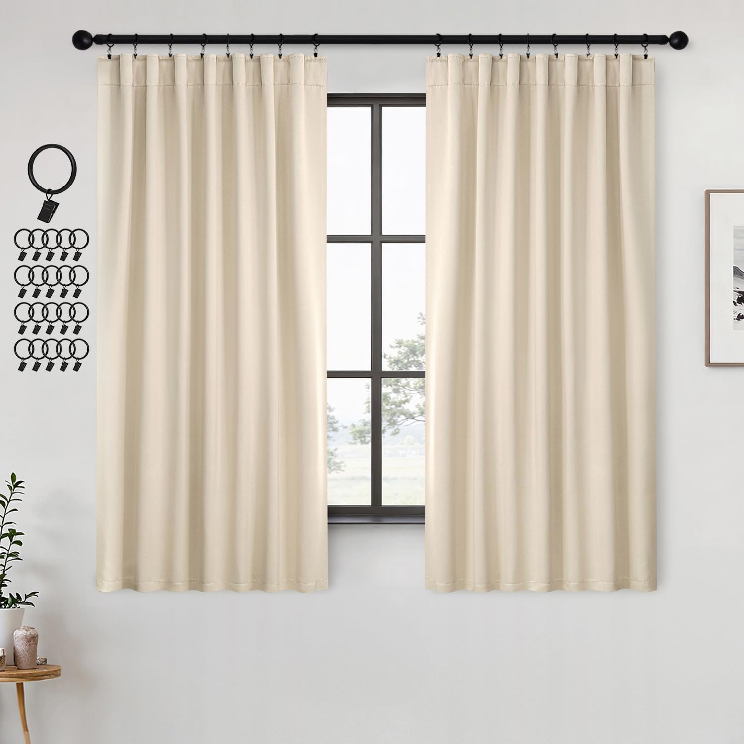 ANRODUO Back Tab Blackout Curtains for Bedroom Living Room, Rod Pocket Pinch Pleated Thermal Insulated Room Darkening Curtains 72 Inches Long 2 Panels, Cream Beige, 42 x 72 Inch