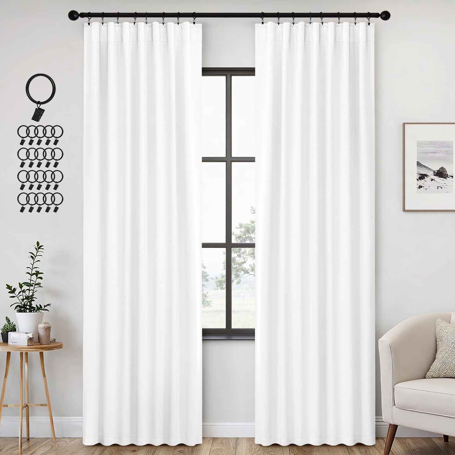 ANRODUO Back Tab Blackout Curtains for Bedroom Living Room, Rod Pocket Pinch Pleated Thermal Insulated Room Darkening Curtains 90 Inches Long 2 Panels, White, 42 x 90 Inch