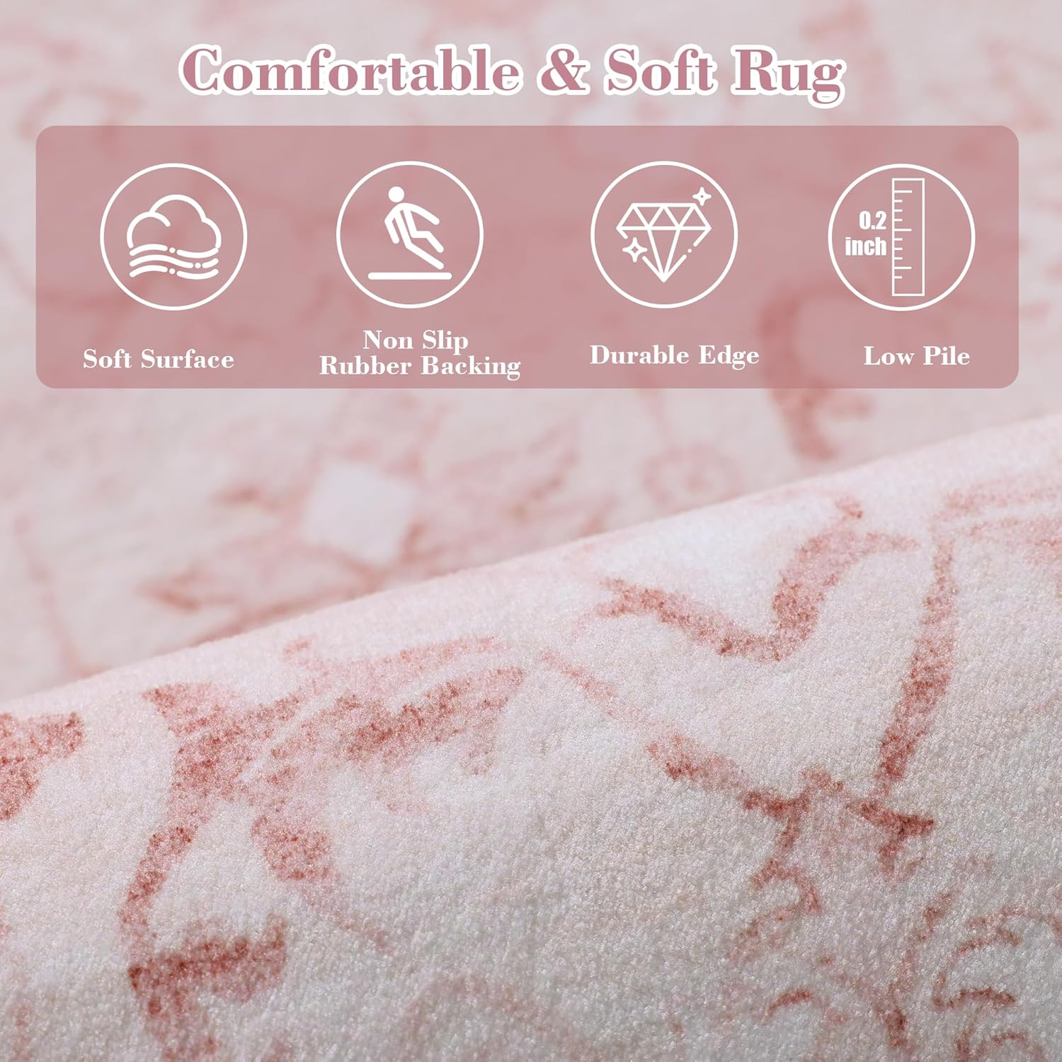 Pink Area Rugs 5x7 Rugs for Living Room, Machine Washable Rugs for Bedroom, Distressed Vintage Living Room Rug, Rug Non Slip Carpet Cream Green Area Rug for Dining Room Office