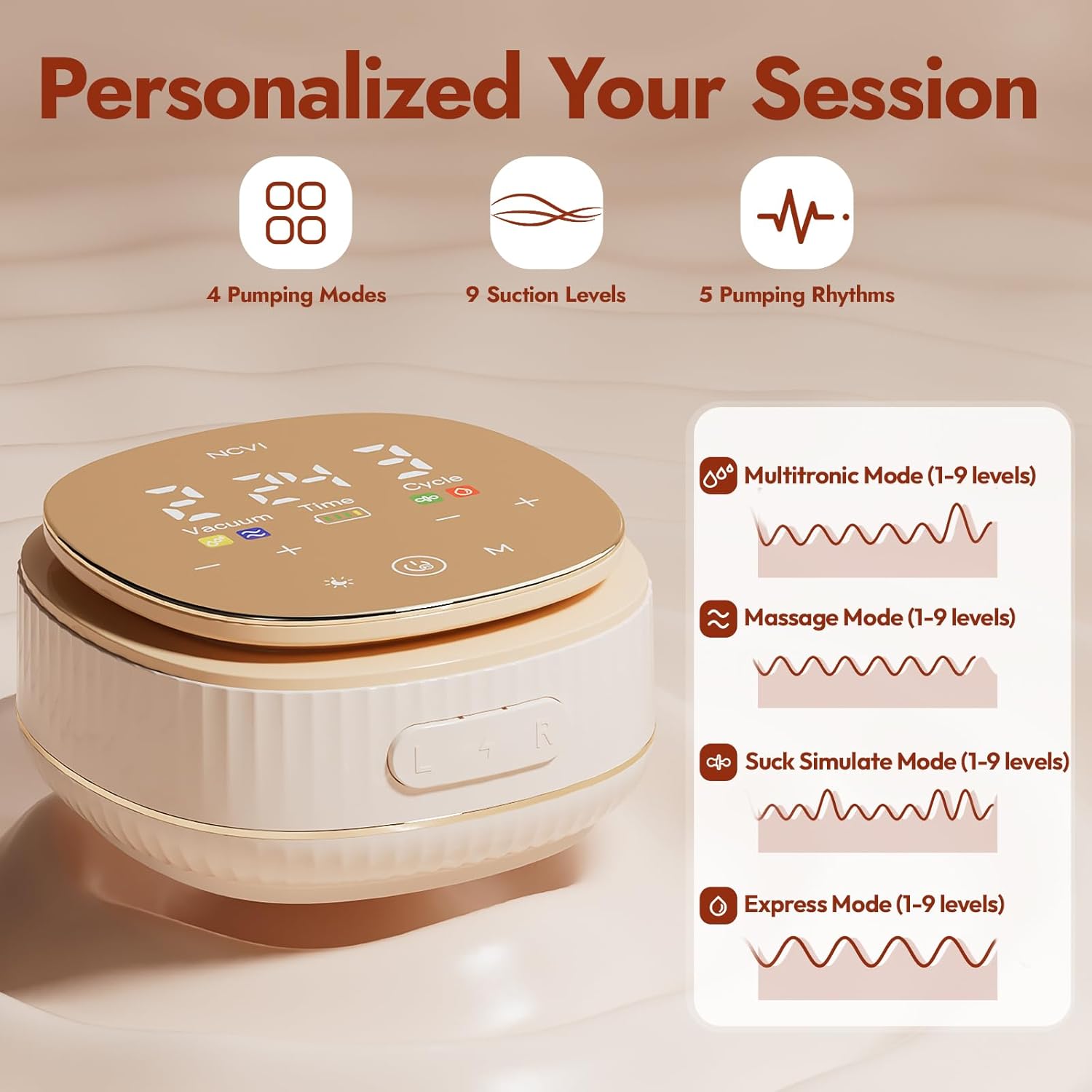 - Customizable Modes for Efficient Output: Hospital-grade breast pump with 4 pumping modes, 9 suction levels, and 5 speed settings. Easily switch between stimulation and expression phases to optimize milk flow and reduce discomfort. Perfect for both new moms and experienced pumpers