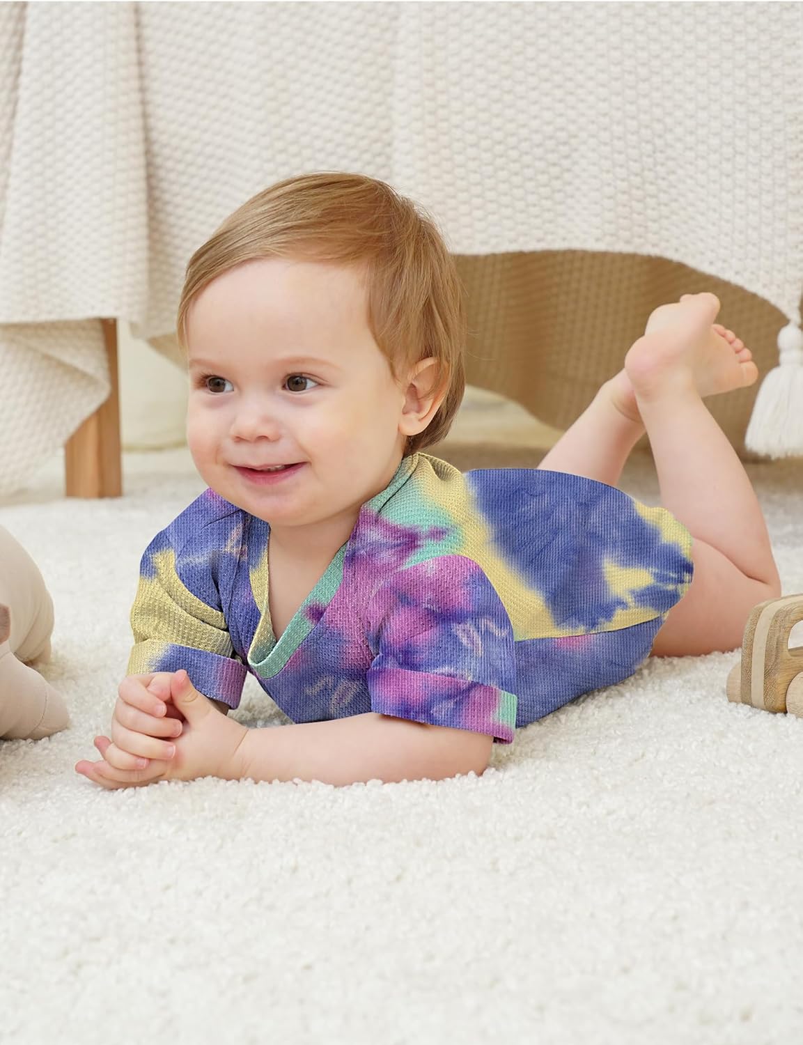• One-of-a-Kind Pattern: Each piece is using tie dyeing process, creating unique marbled patterns that make your baby the star of every playdate. Unlike mass-produced prints, our tie-dye magic ensures no two outfits are exactly alike!