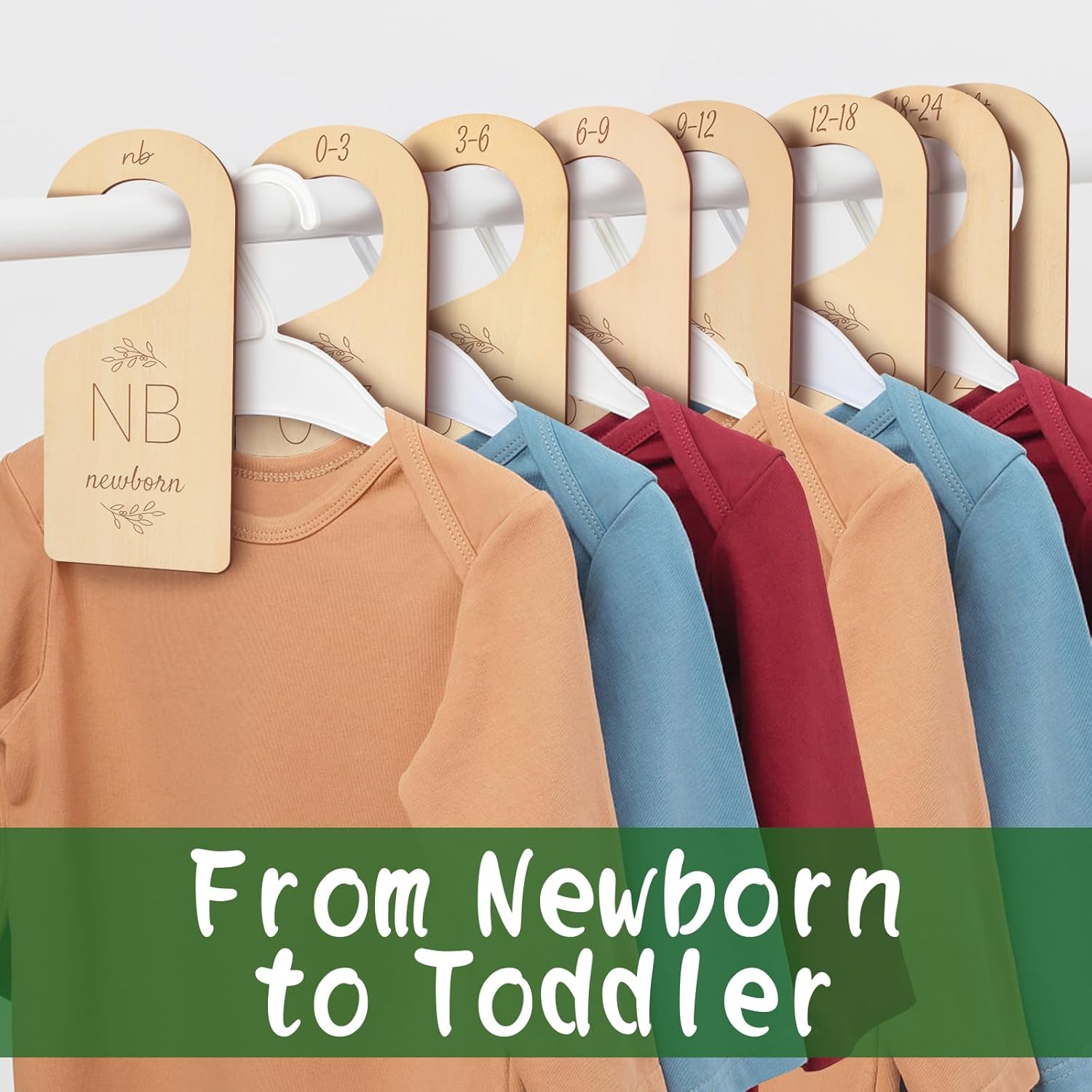 - Gender Neutral Dividers: Beautiful patterns are printed on the surface of each baby clothes dividers for closet with greenery style, with leaf elements and neutral wood design, classy wooden material goes well with any themed nursery organization