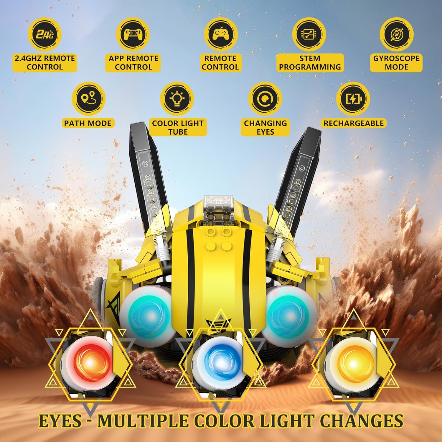 - 📱🎮 Dual Control Modes (Remote + App) - 2.4GHz remote (98ft/30m range) offers Path/Gyro/Programming modes. The companion app enables 360° omnidirectional control, slope navigation, and coding basics for STEAM learning. Perfect for indoor/outdoor adventures.