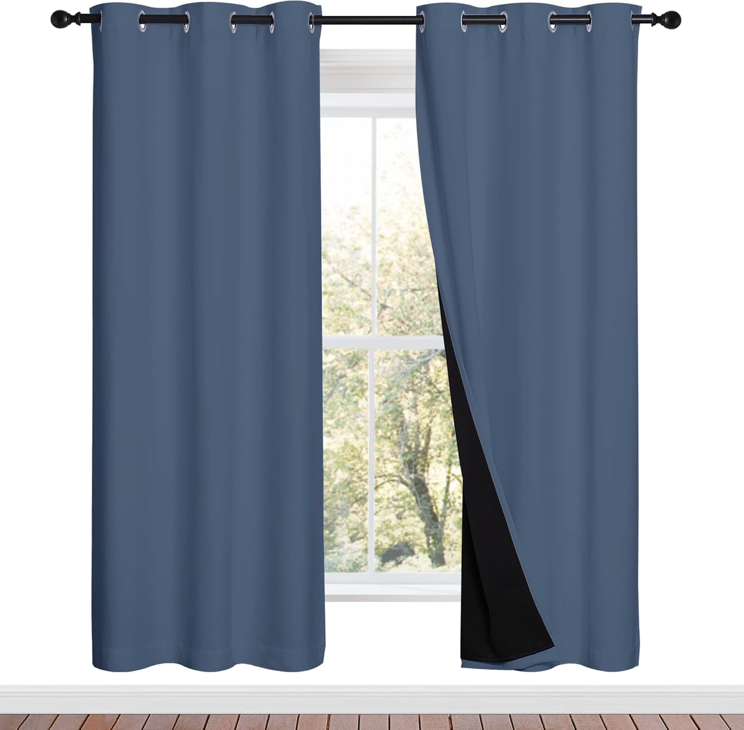 NICETOWN 100% Blackout Curtains Thermal, Stone Blue, 1 Pair, W37 x L70, Noise Reduction and Privacy Curtains for Patio Door, Black Lined Blackout Drapes with Grommet Top