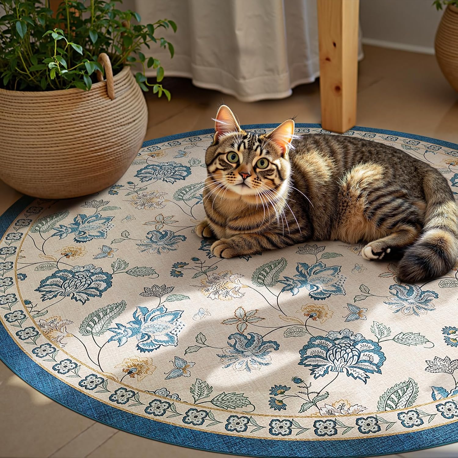 - Highlight Playful Corner & Nook: The perfect round rug for cozy reading nook, kids' play areas, or pet-friendly spots. It adds a light, vintage floral touch that enlivens small spaces with charm, while its flat, easy-clean surface keeps everyday messes manageable.