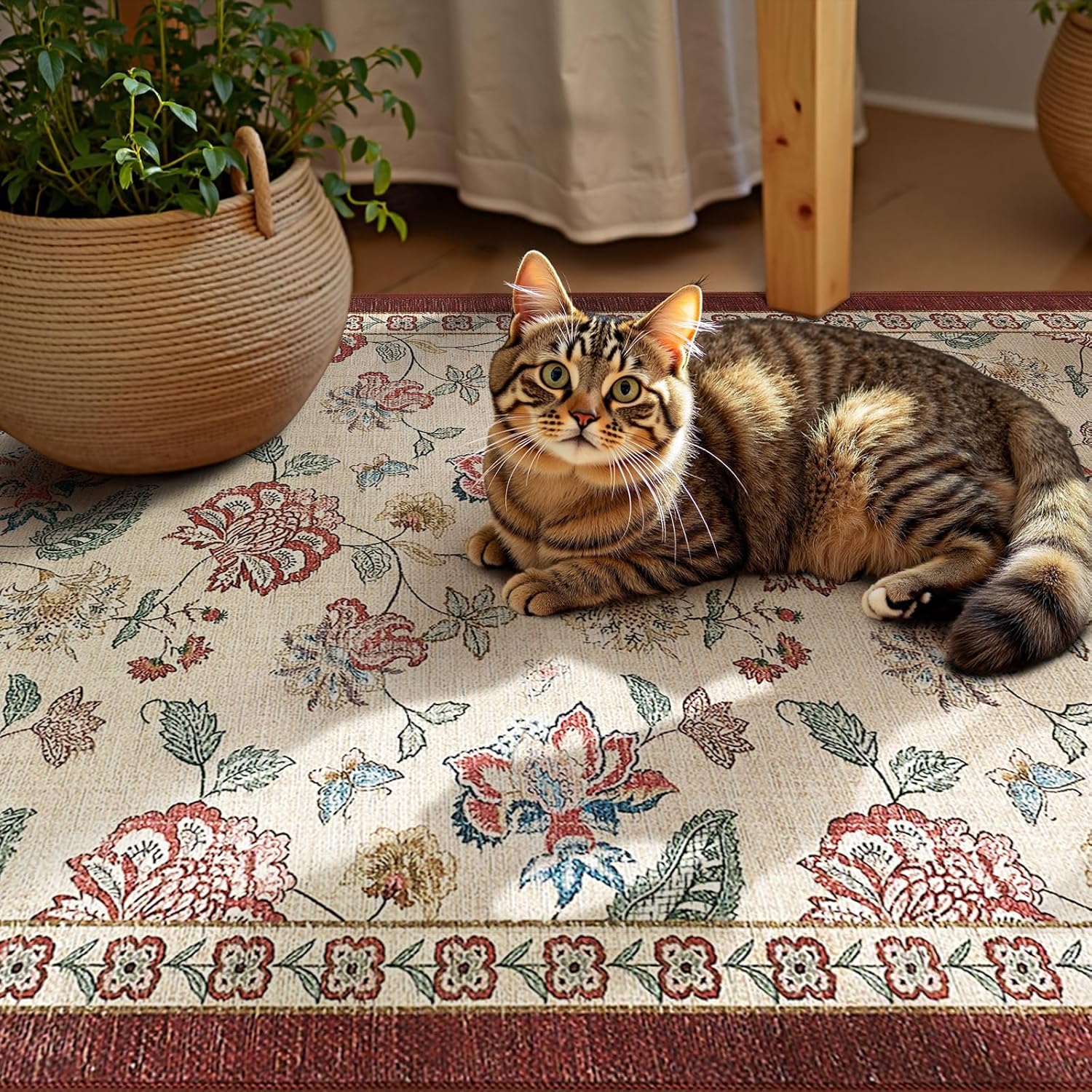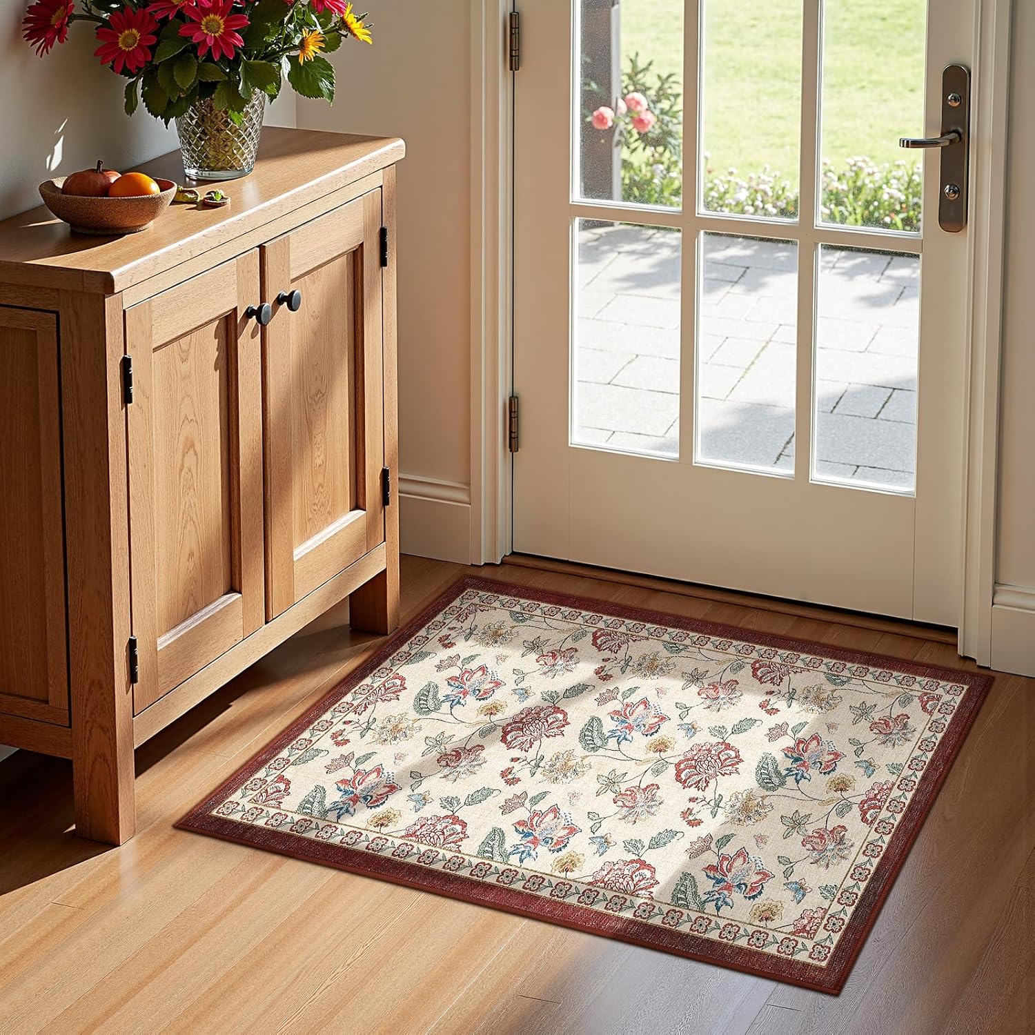 - Freshen Entryway & Kitchen: Perfectly sized to welcome guests at doorway or brighten cozy kitchen corner, this compact rug brings vintage floral charm without adding bulk. Its slim, easy-care design fits snugly in busy spots, making everyday life a little more stylish and effortless.