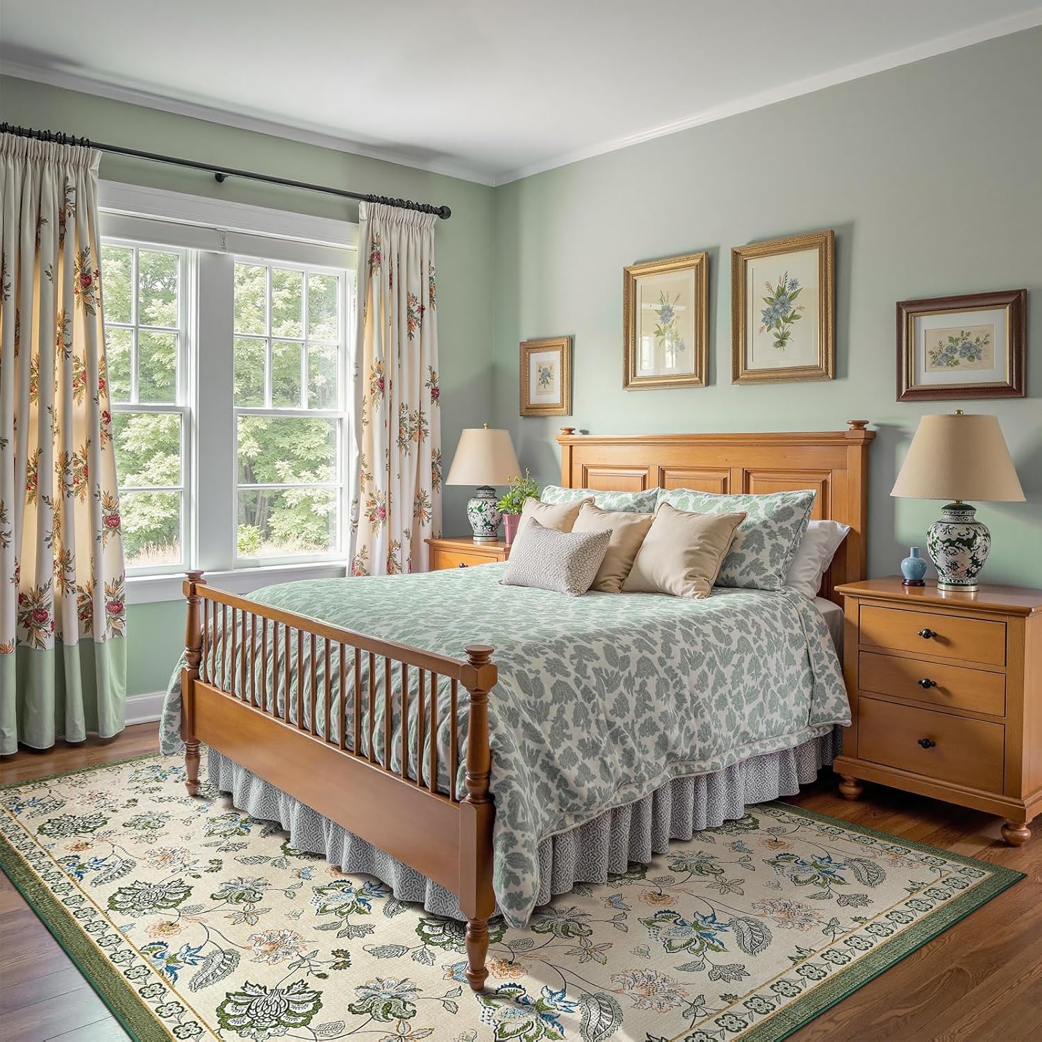 - Floral Vintage Charm: Layers of lush botanical florals framed by an ornate border bring timeless American vintage elegance to your home. The soft cream base and warm floral tones create a welcoming mood—like stepping into a sunlit garden filled with stories.