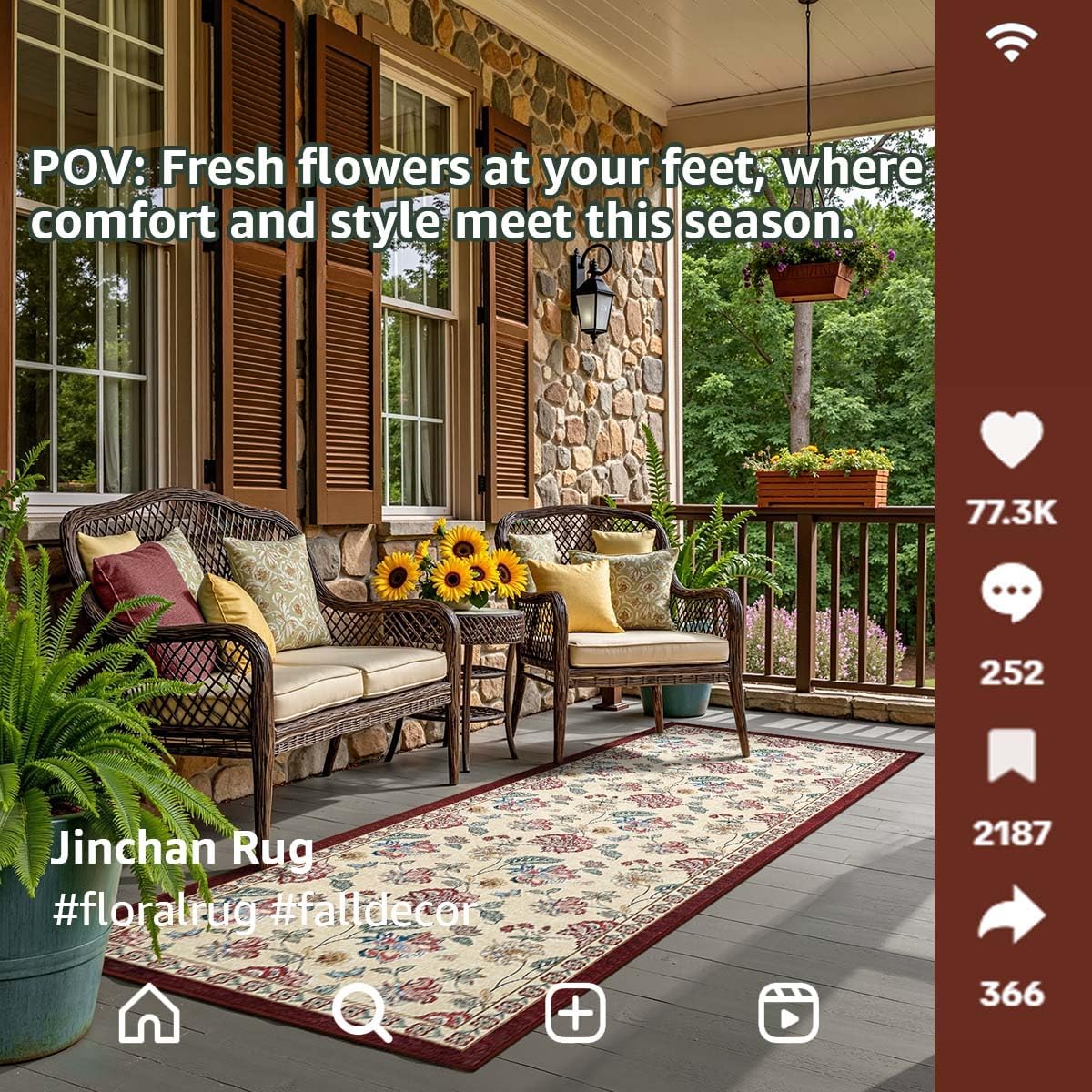 - Floral Vintage Charm: Layers of lush botanical florals framed by an ornate border bring timeless American vintage elegance to your home. The soft cream base and warm floral tones create a welcoming mood—like stepping into a sunlit garden filled with stories.