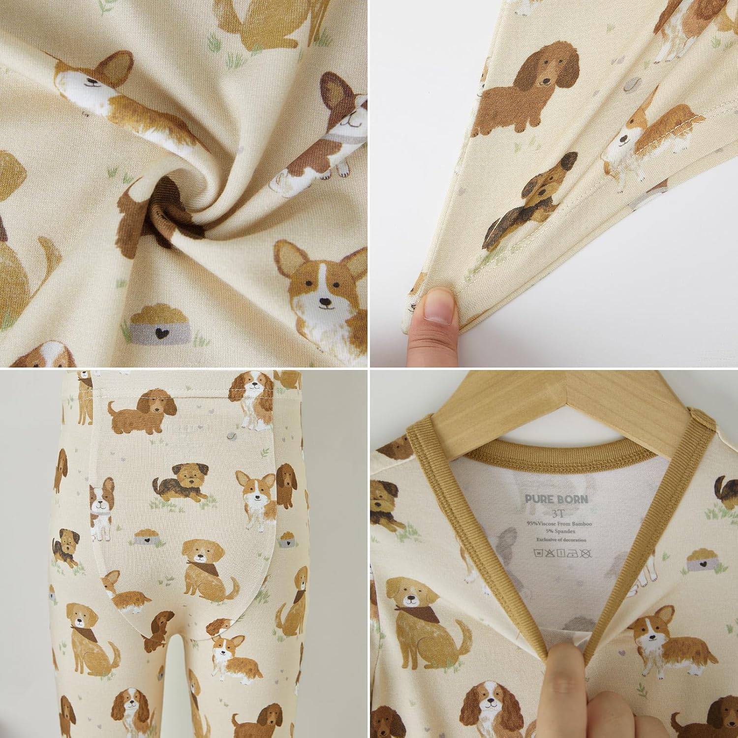 - COMFORTABLE PREMIUM PAJAMAS - Our pajamas set is made with 95% viscose from bamboo and 5% spandex. The fabric is ultra-soft, smooth and 4-way stretch, adorable patterns designs, absorbs sweat quickly, drives dampness away, provides baby ultimate comfort, perfect for kid's tender skin