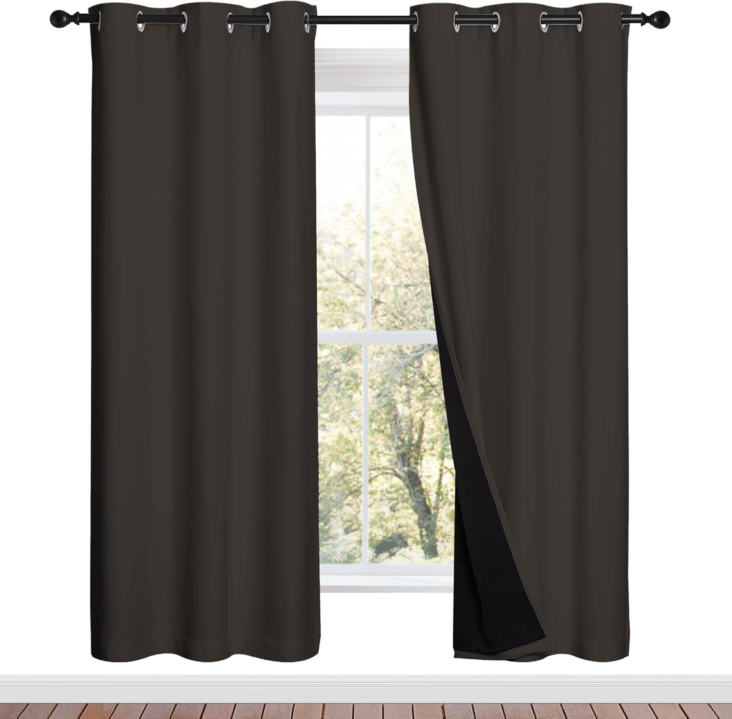 NICETOWN Full Shade Curtain Panels, 37" Wide x 70" Long, Toffee Brown, Pair of Thermal Insulated & Energy Efficiency Blackout Drapes for Living Room, Lined Silky Performance Window Dressing