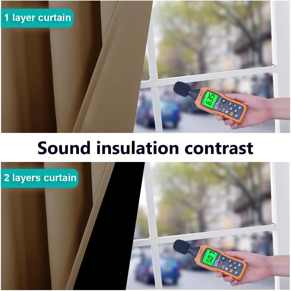 - NOISE REDUCING: Heavyweight Blackout Lined Curtain Panels can be a good sense of drape, making the window completely closed, to achieve SOUNDPROOF. The effect of absorbing sound is 2 times higher than the ordinary 1-layer of curtains so that at any time you are not disturbed by noise.