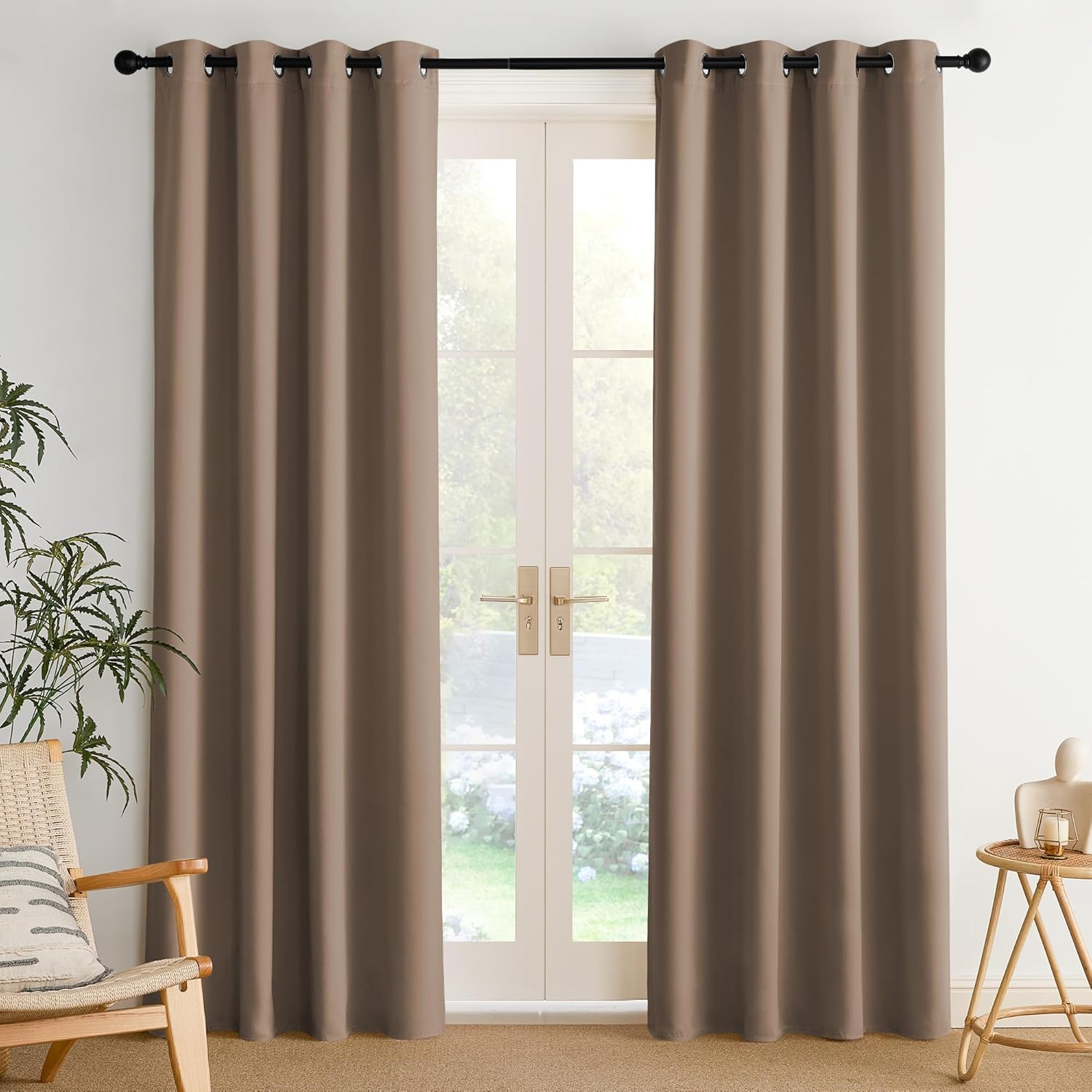 NICETOWN Blackout Thermal Grommet Drapes, Energy Saving Window Treatments for Living Room, Patio, Laundry, Closet, Boys Room - Heavy Duty, 2 Panels, W52 x L84, Cappuccino