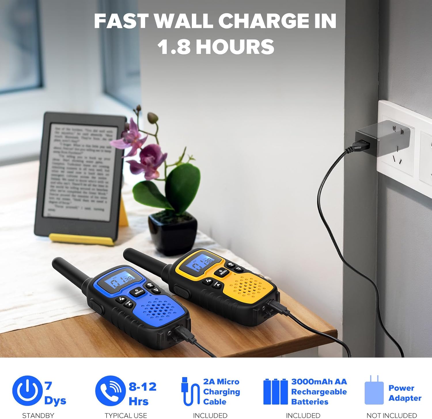 Wishouse Walkie Talkies for Kids Adults - Long Range Rechargeable 2 Way Radios,Gift,Hiking Accessories Camping Gear with Lamp,SOS Siren,NOAA Weather Alert,VOX,Easy to Use 2 Pack