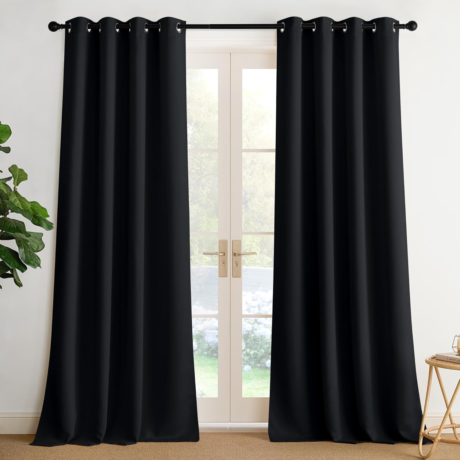 NICETOWN Black Blackout Light Blocking Thermal Grommet Curtains, 90 Inch Long Light Blinds Privacy Shades for Bedroom, Living Room, Laundry, Patio, Boys Room - Lightweight, 2 Panels, W52 x L90