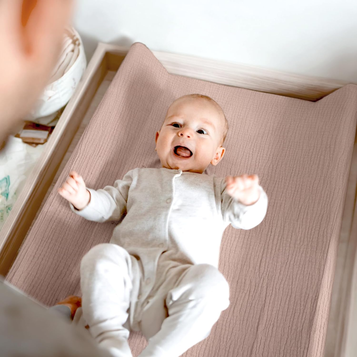 - SOFT AND BREATHABLE: Our changing pad covers is made of 100% muslin cotton. The touch is soft and comfortable, which is very suitable for infant sensitive skin. Lightweight and breathable fabric will keep your baby cool and comfortable.