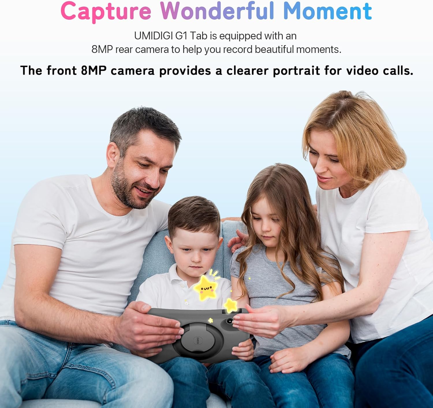 - 【Dual Camera + Large-Capacity Battery】G1 Tab with excellent 8MP rear camera + 8MP front camera, easy to record daily life and enhance parent-child interaction; 6000mAh large-capacity battery and intelligent power saving tech, with 550 hours of standby time, 52 hours of talk time and 15 hours of playtime, you can travel and hike with confidence.
