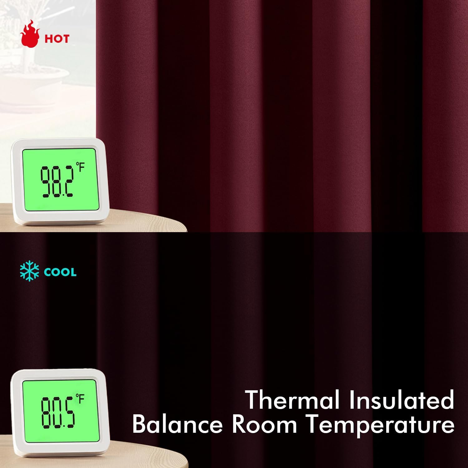 - High-Quality Material: Crafted from high-quality 225GSM polyester fabric, these curtains offer enhanced durability and elegant drape. The soft blackout material features triple-layer weaving technology, with a middle layer of black yarn for superior light blocking and privacy. Both sides feature the same refined color, ensuring a seamless look that elevates your home’s aesthetic with understated sophistication
