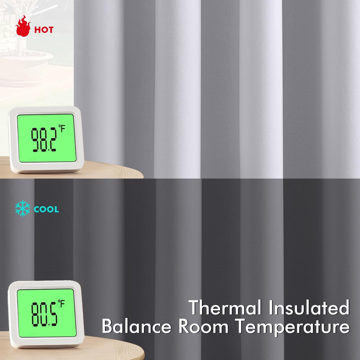 - Energy Saving: The thermal-insulated fabric keeps heat out in summer and retains warmth in winter, reducing your reliance on AC/heating and lowering energy costs by up to 15%. They are perfect for living rooms, bedrooms, patios, villas and offices