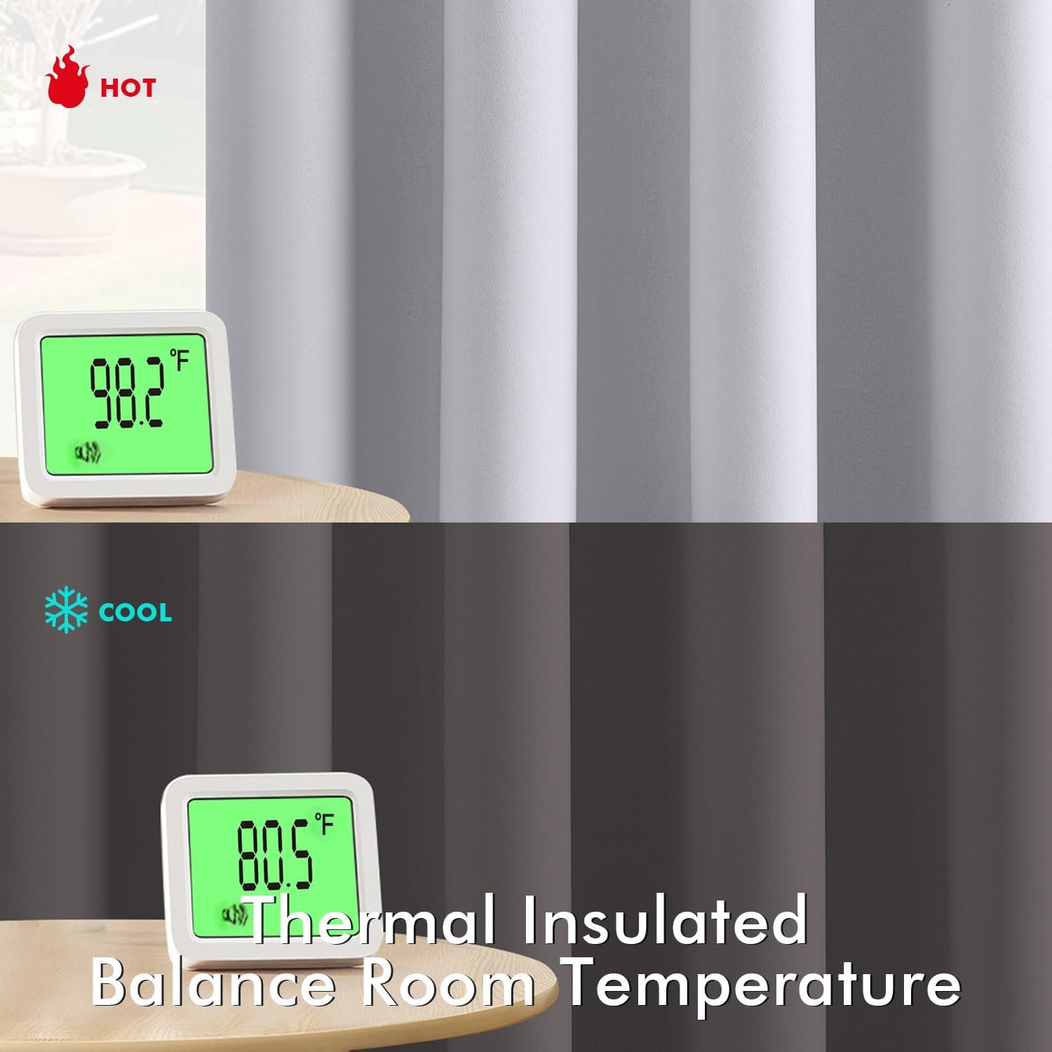 - Energy Saving: The thermal-insulated fabric keeps heat out in summer and retains warmth in winter, reducing your reliance on AC/heating and lowering energy costs by up to 15%. They are perfect for living rooms, bedrooms, patios, villas and offices