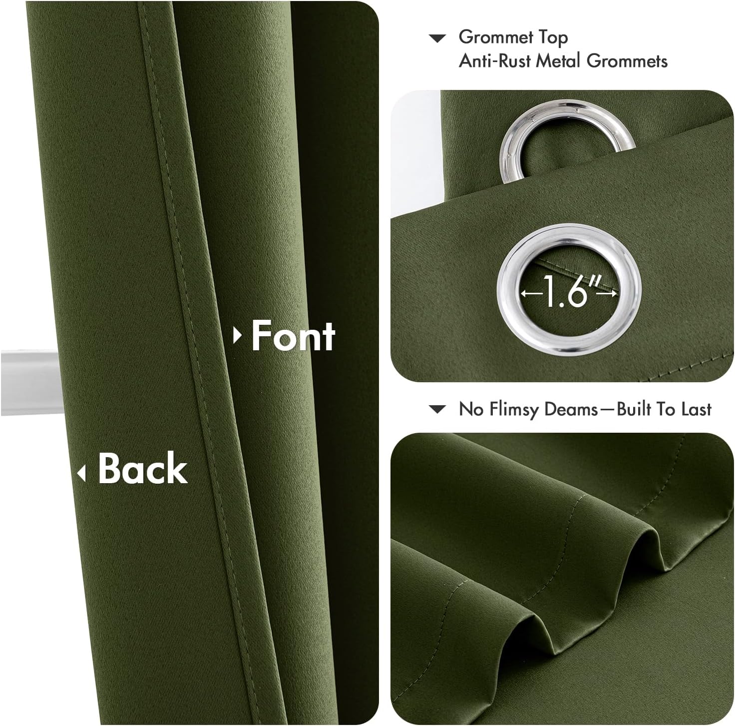 MIULEE Olive Green Blackout Curtains - Thermal Insulated Bedroom Curtains Room Darkening Drapes for Living Room Kitchen Grommet Top Light Blocking Window Treatment, 40 x 45 Inches Long, 2 Panels