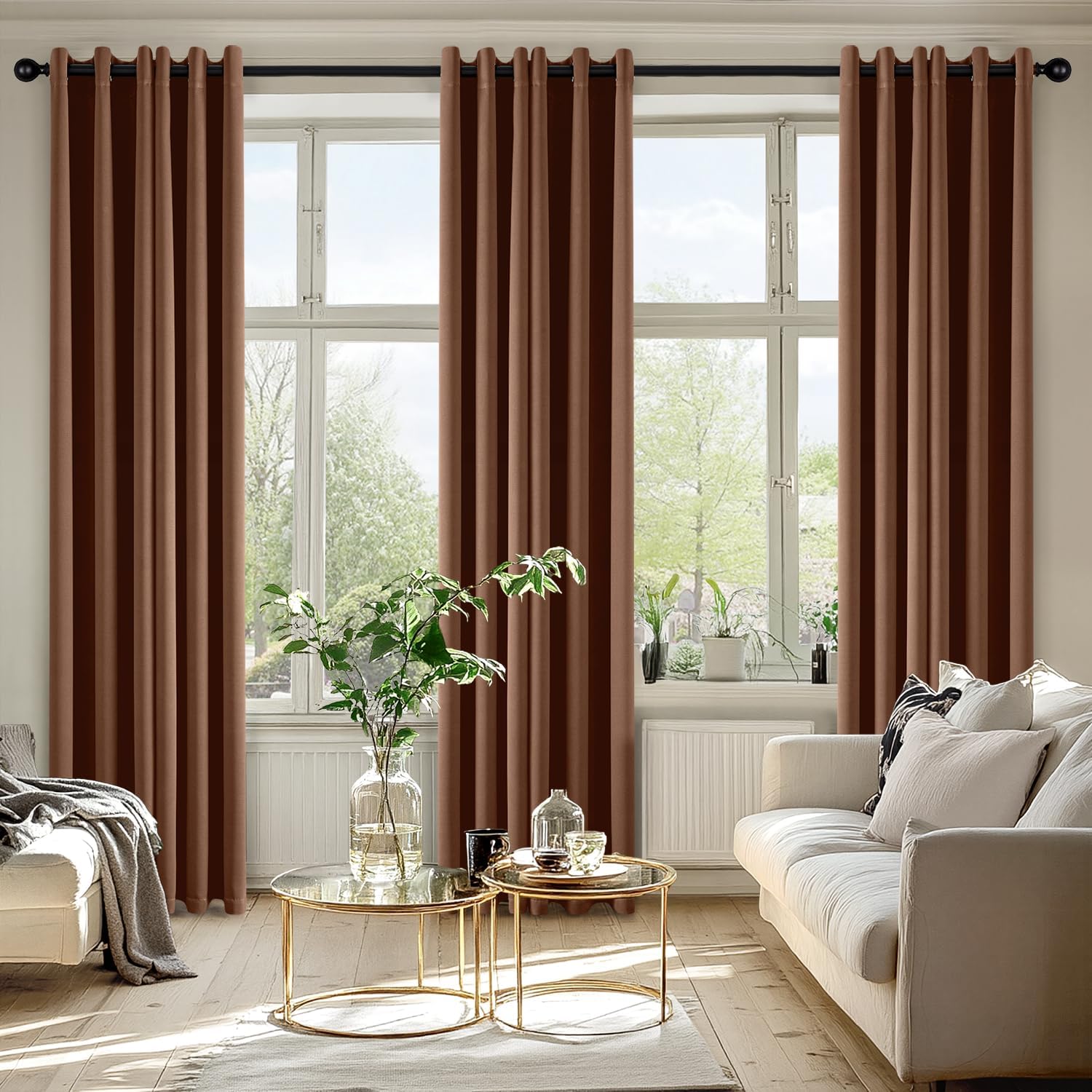 - High-Quality Material: Crafted from high-quality 225GSM polyester fabric, these curtains offer enhanced durability and elegant drape. The soft blackout material features triple-layer weaving technology, with a middle layer of black yarn for superior light blocking and privacy. Both sides feature the same refined color, ensuring a seamless look that elevates your home’s aesthetic with understated sophistication
