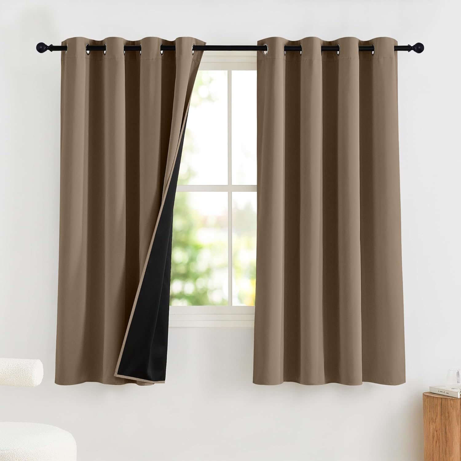 NICETOWN 100% Blackout Curtains for Bedroom, Thermal Insulated Window Drapes Room Darkening Cafe Curtains for Living Room with Grommet Top, 52 x 63 Inch Long, 2 Panels, Khaki