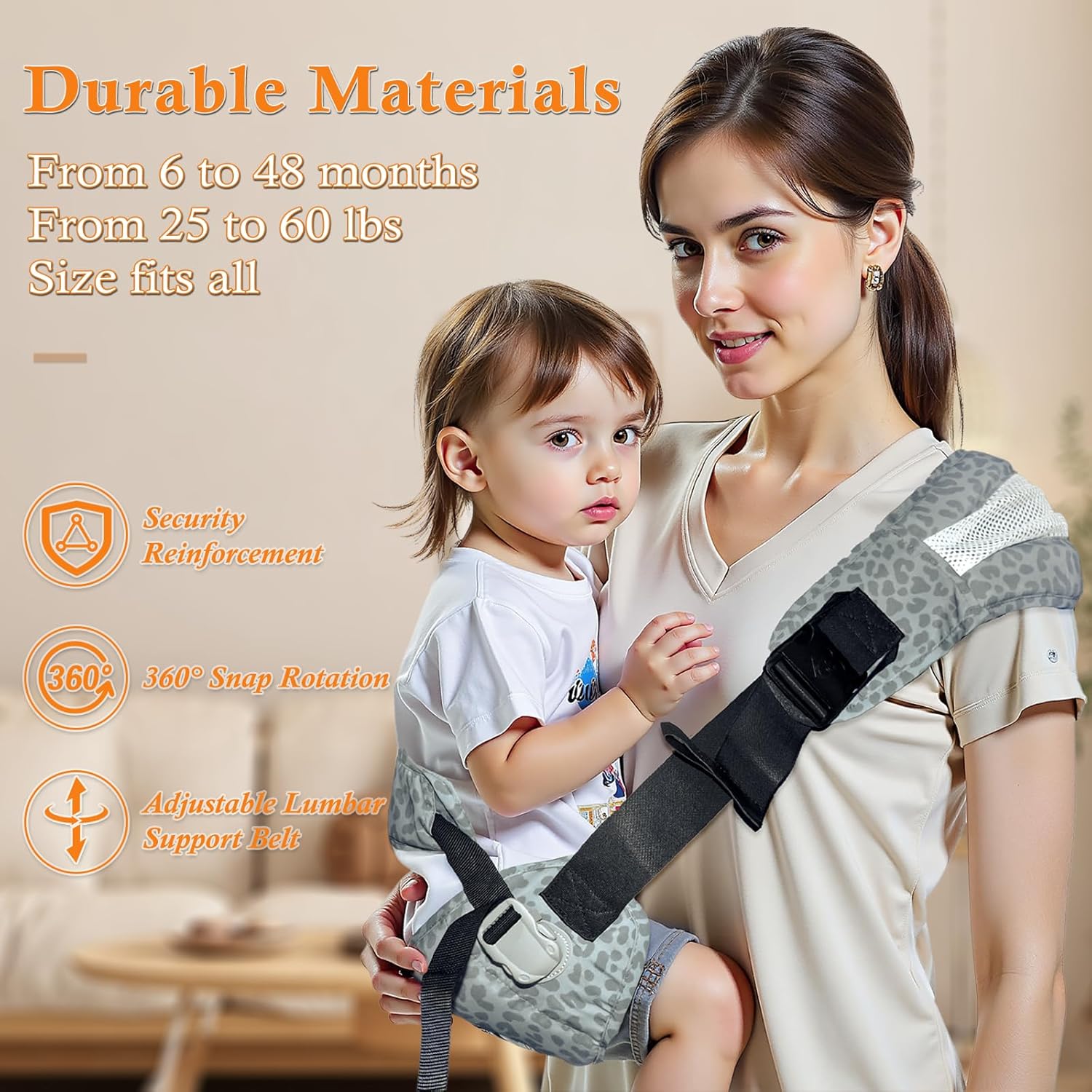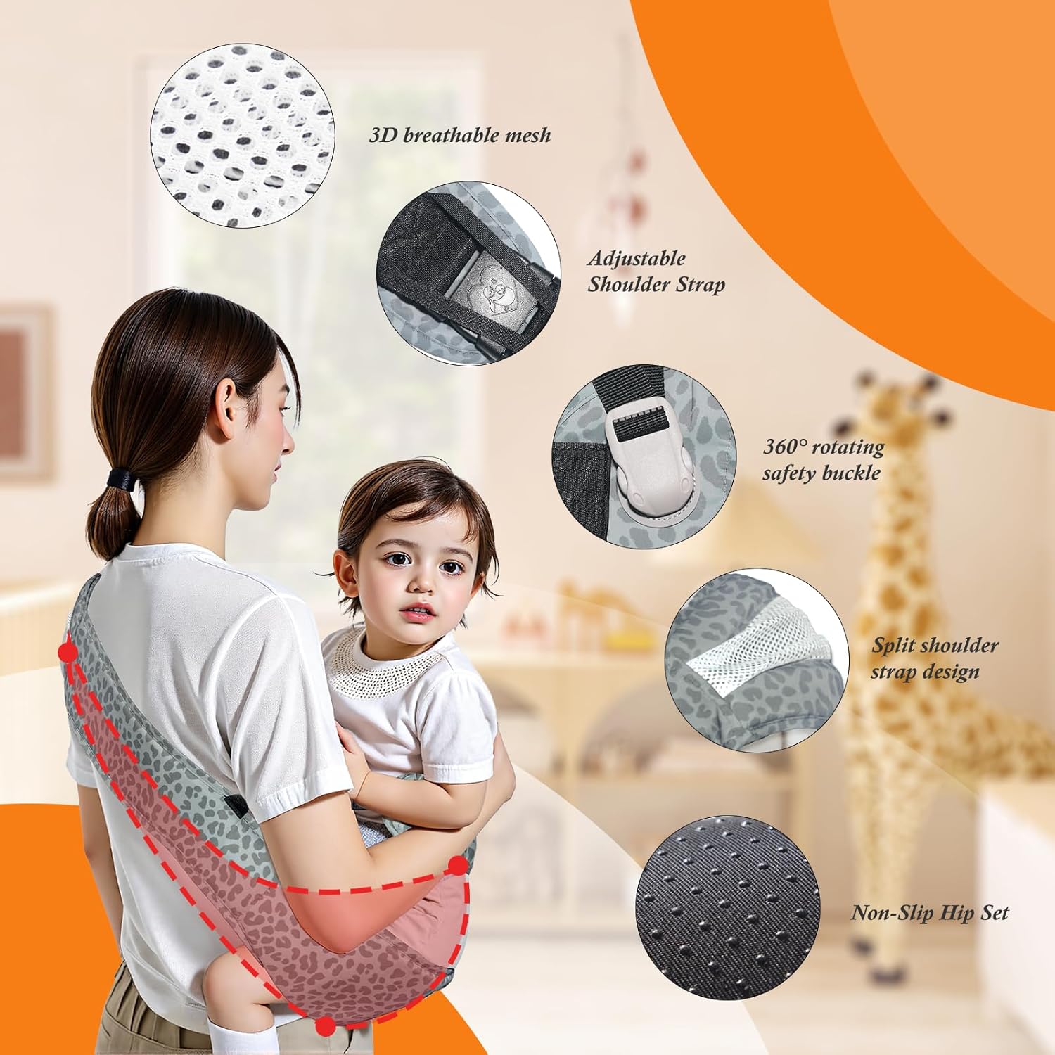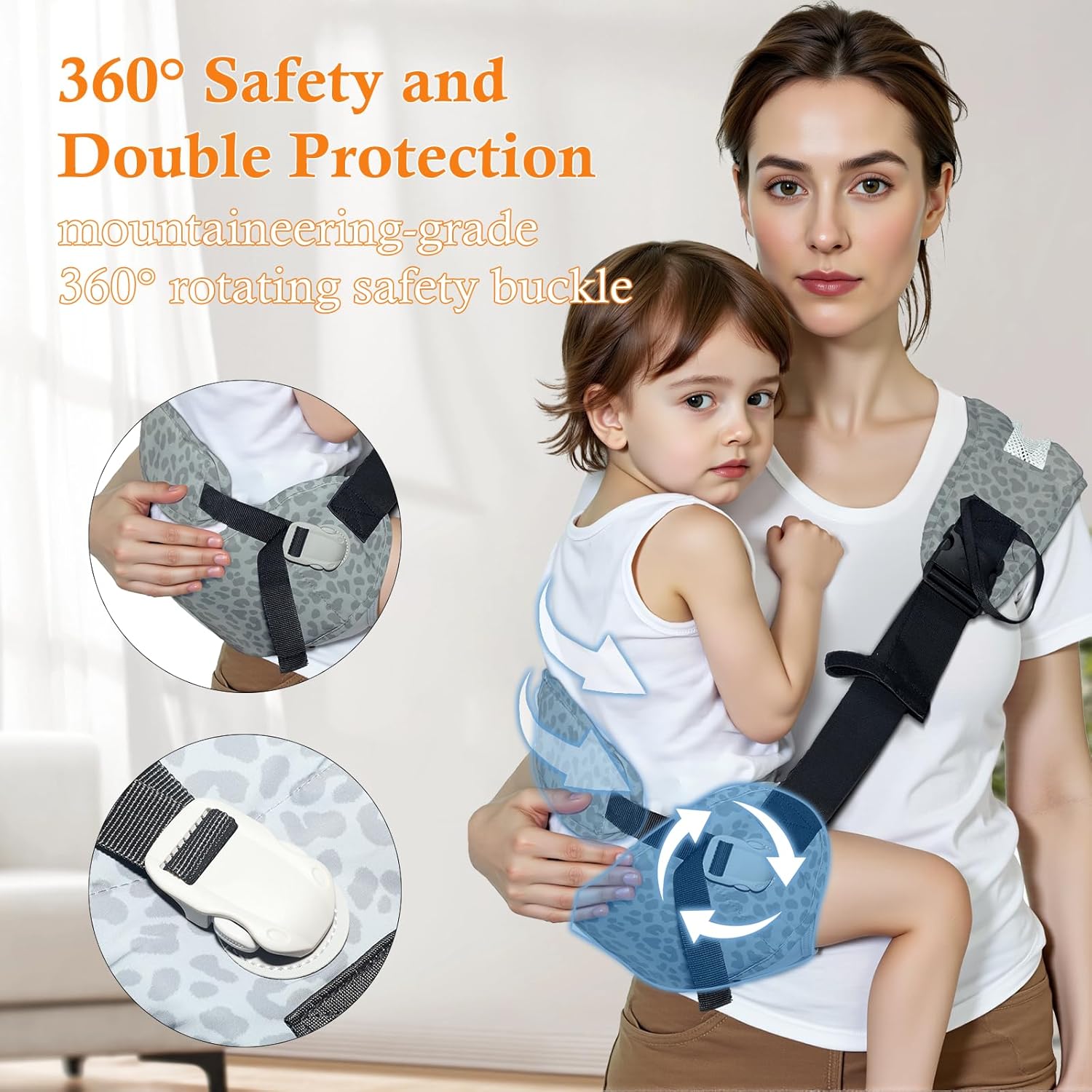 - 360°Safety and Double Protection:Equipped with a 6cm mountaineering-grade 360° rotating safety buckle and made of 600D high-density Oxford cloth, this baby carrier sling is slip-resistant and extra durable. The 10cm anti-slip safety rope provides additional protection, ensuring your child’s safety, making it an ideal toddler hip carrier for both everyday and outdoor use.