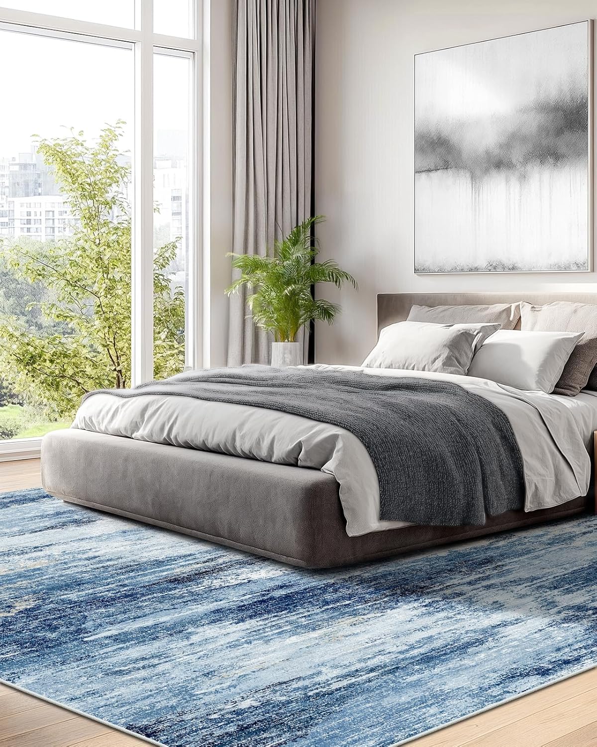 Amada 9x12 Large Area Rug, Modern Abstract Living Room Rug with Non-Slip Backing & Short Pile, Washable Rug with Abstract Pattern for Living Room, Bedroom and Dinning Room, Blue
